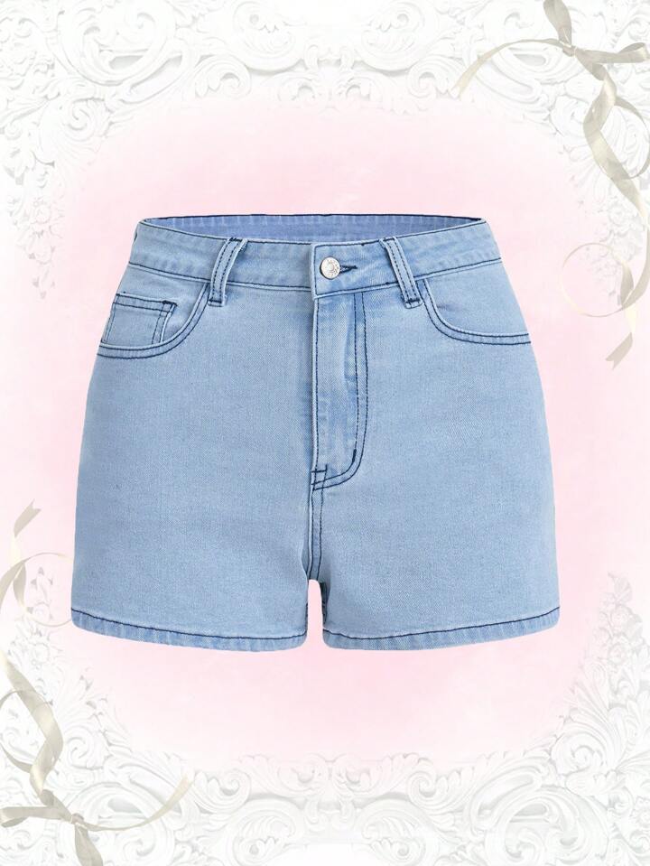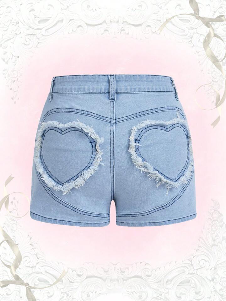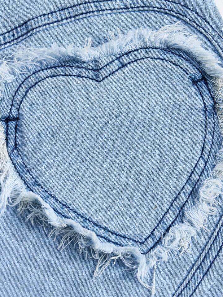 Sweetness Short en jean avec motif cœur ourlet effiloché