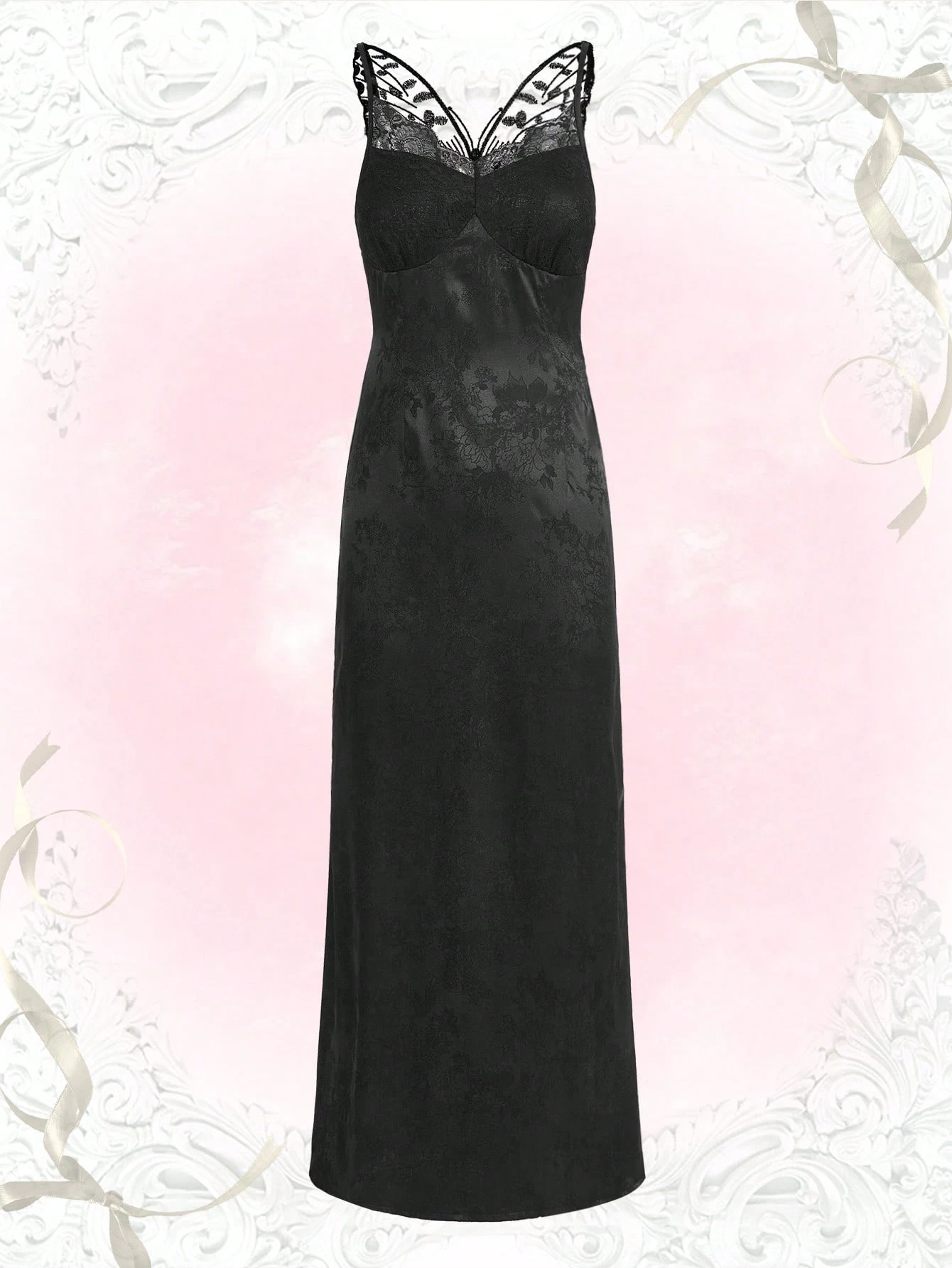 Sweetness Robe à fines brides en jacquard à broderie en dentelle sans manchettes