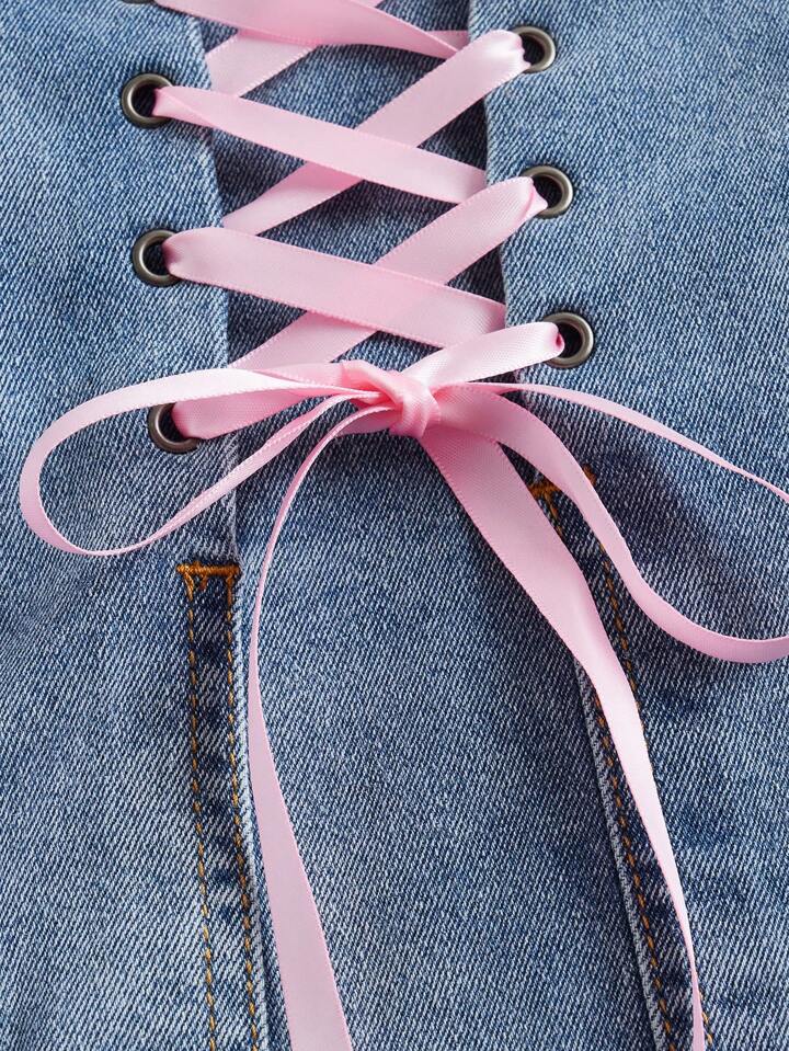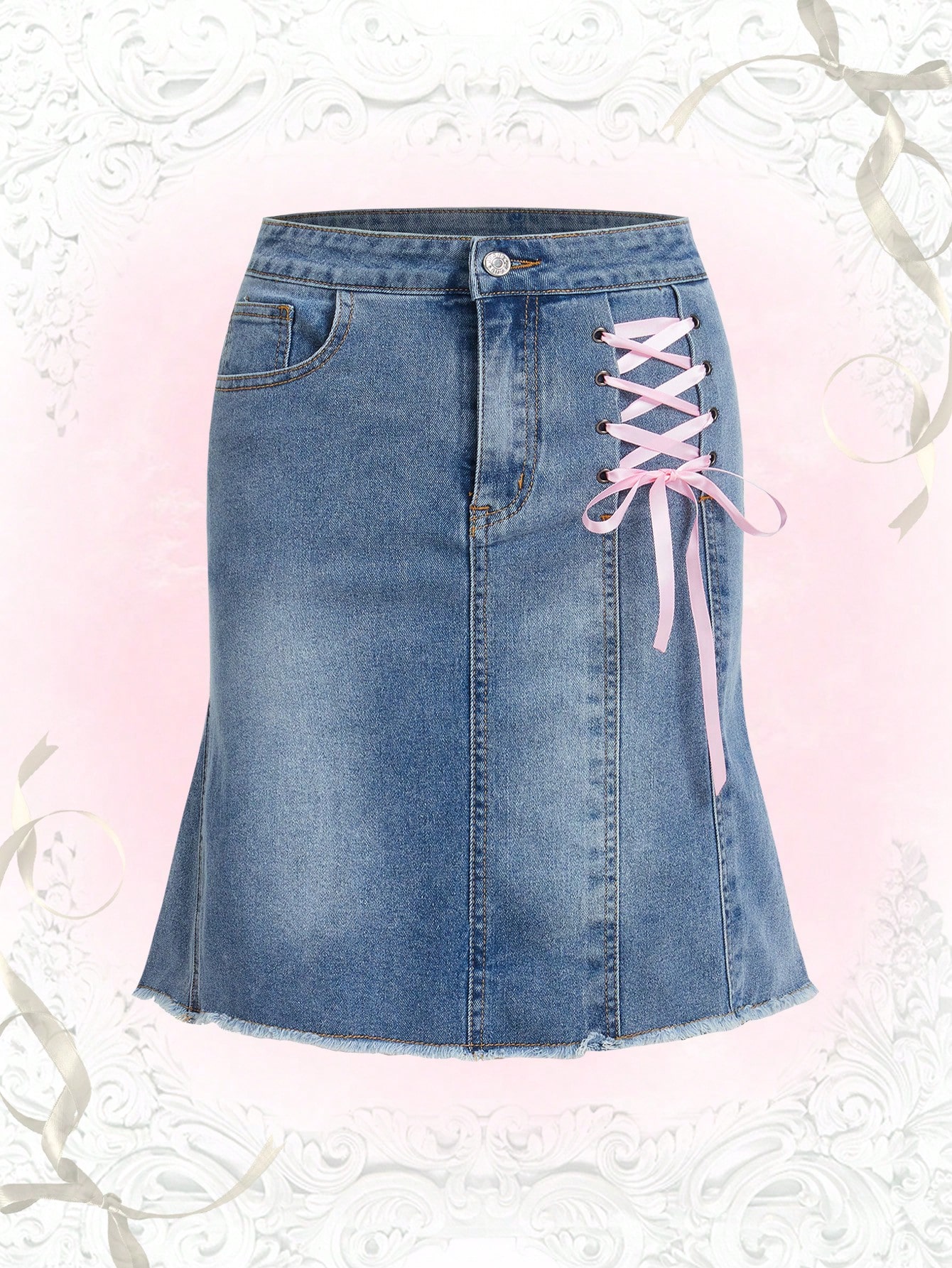 Sweetness Jupe en jean à lacets à ourlet effiloché