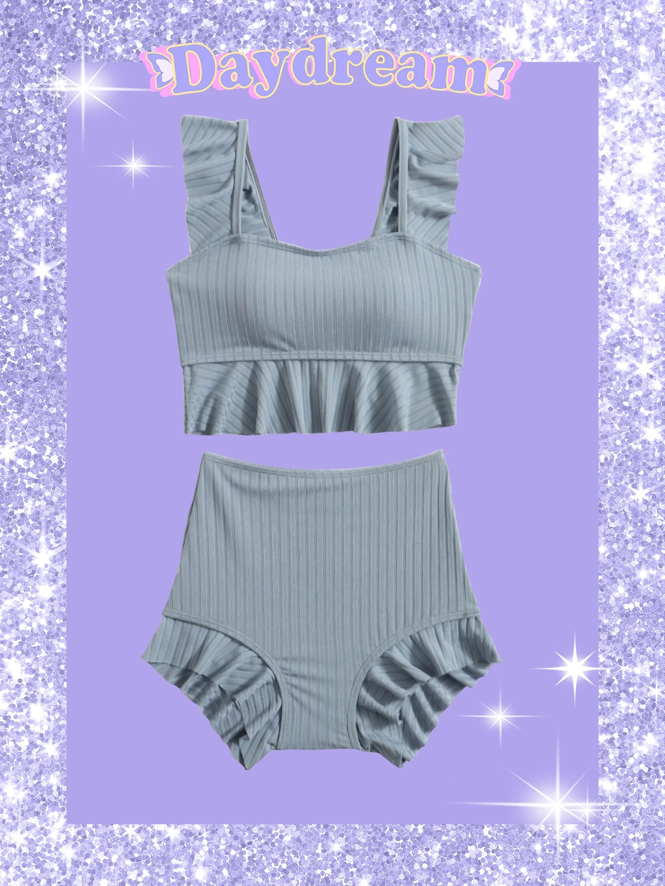 Sweetness Ensemble de bikini à volants unicolore pour l'été, plage