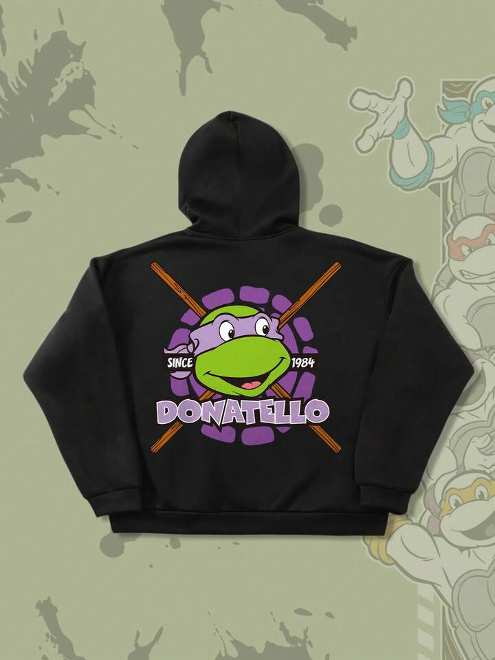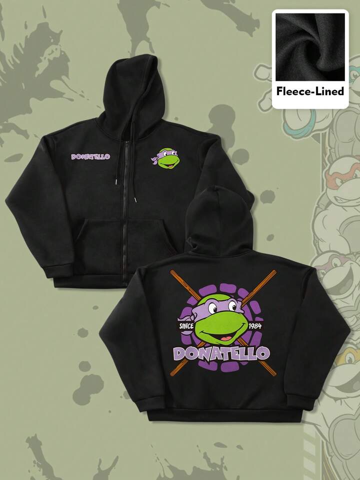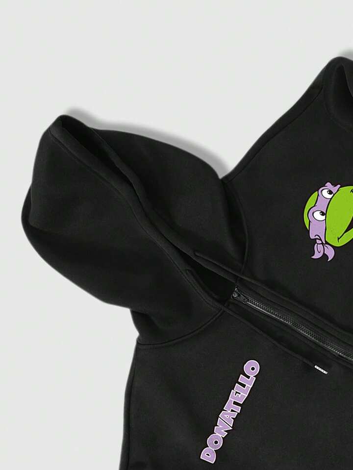 TEENAGE MUTANT NINJA TURTLES X ROMWE sweat-shirt à capuche zippé décontracté pour hommes avec motif de bande dessinée, noir, automne/hiver