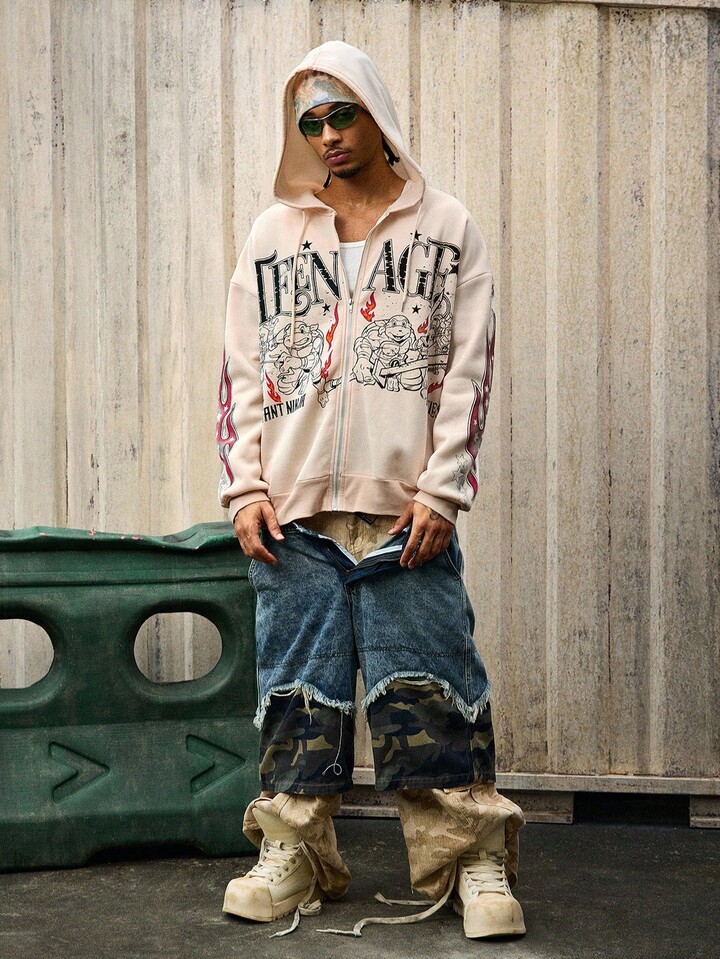 TEENAGE MUTANT NINJA TURTLES X ROMWE Sweat-shirt à capuche homme avec graphique de dessin animé, automne/hiver