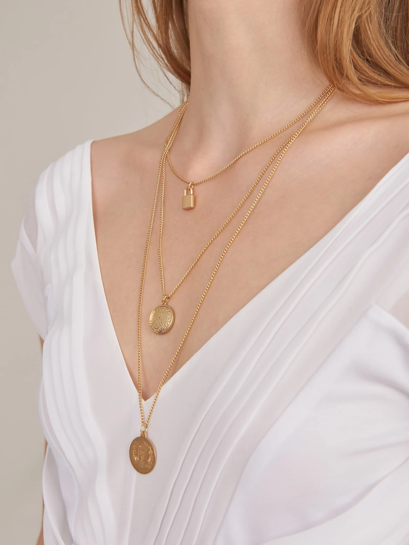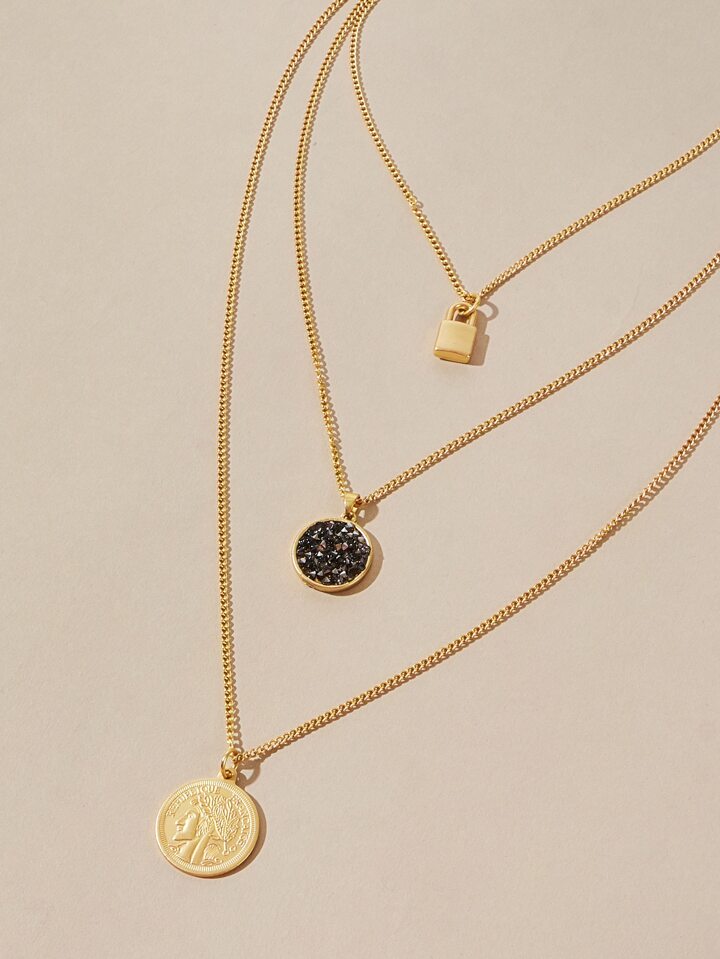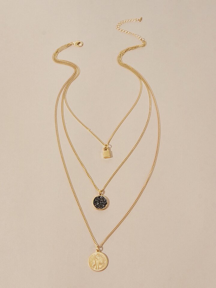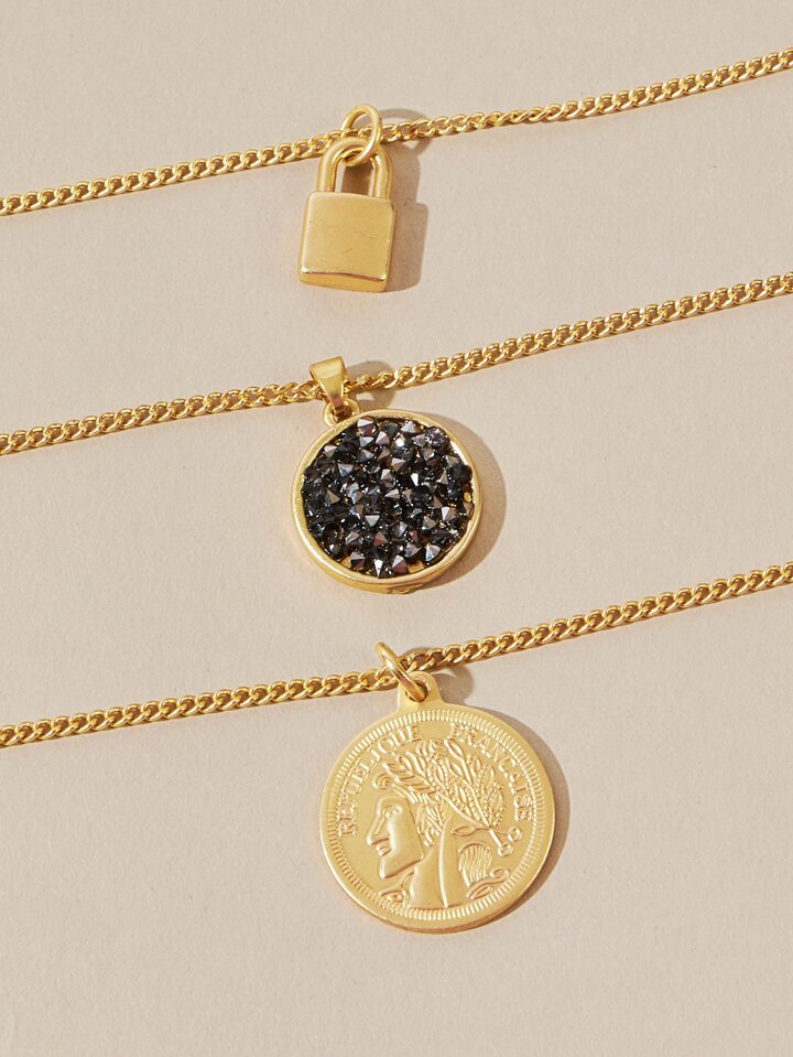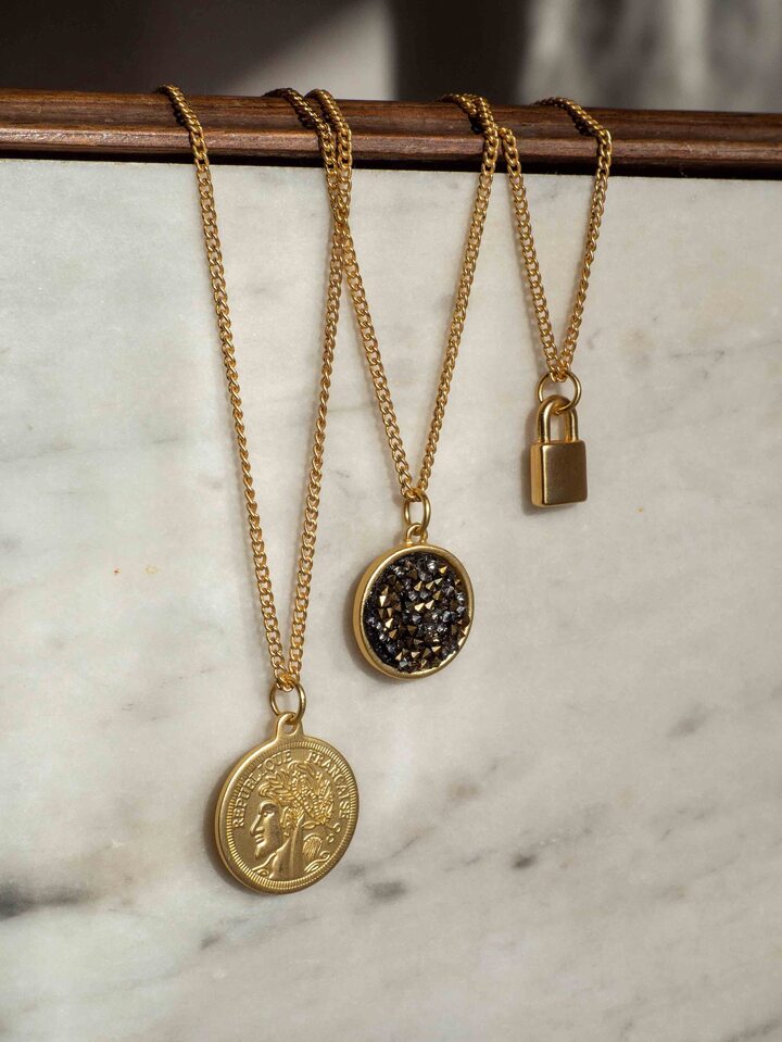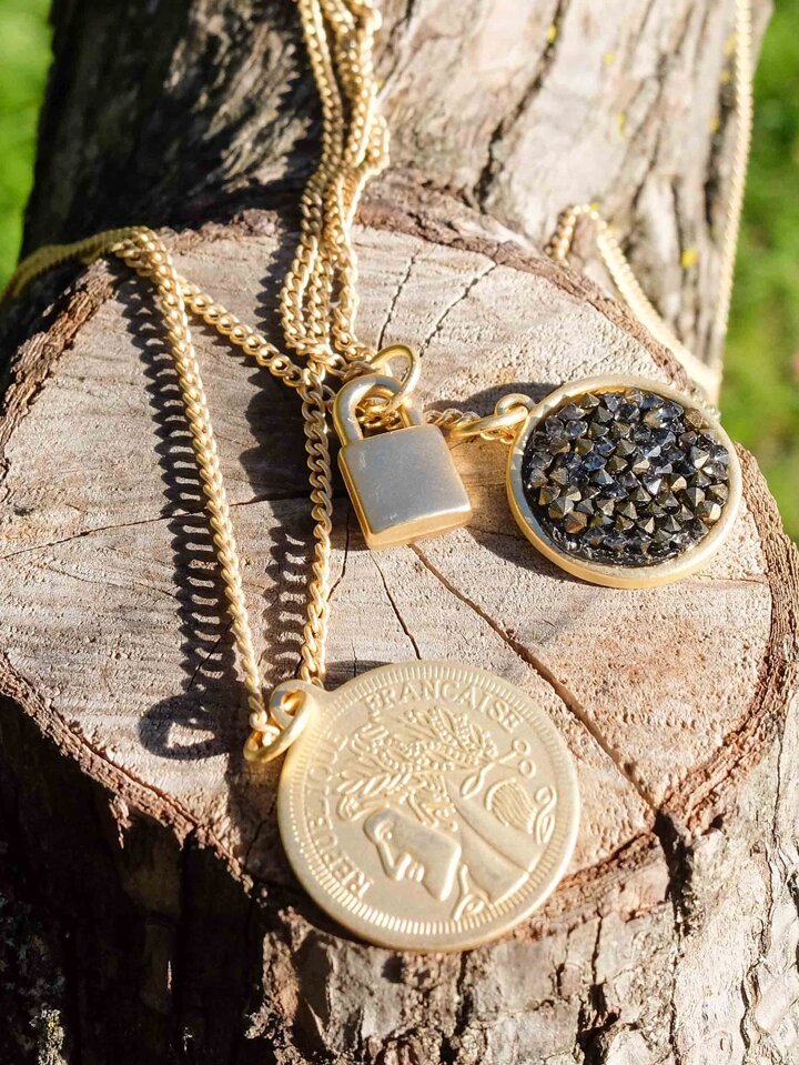 Collier avec pendentif triple pièce et cadenas
