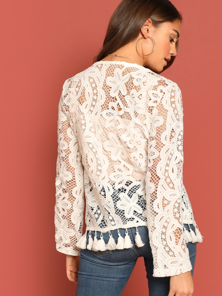 Manteau en dentelle avec découpe et frange