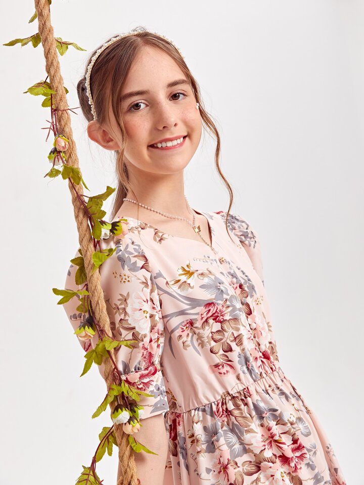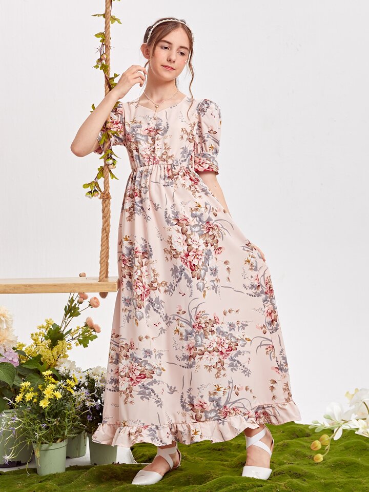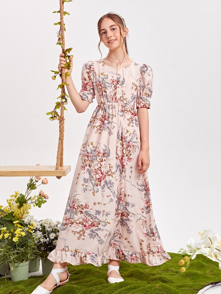 Fille adolescente Robe fleurie à volants