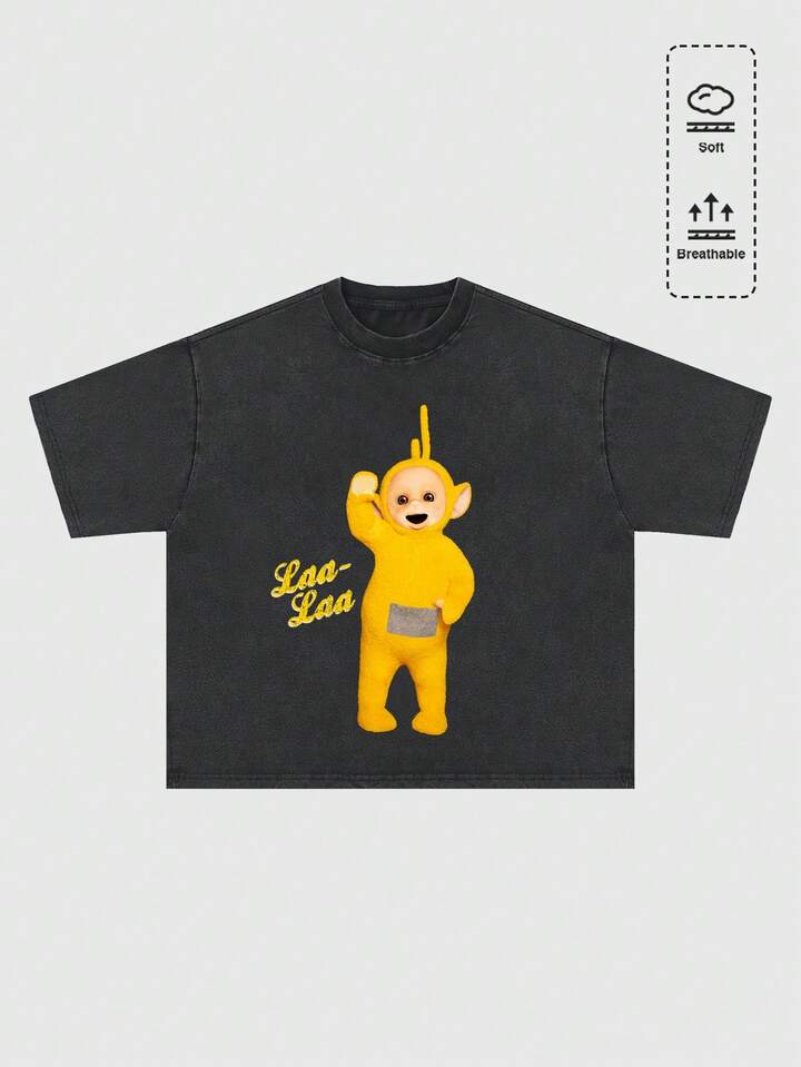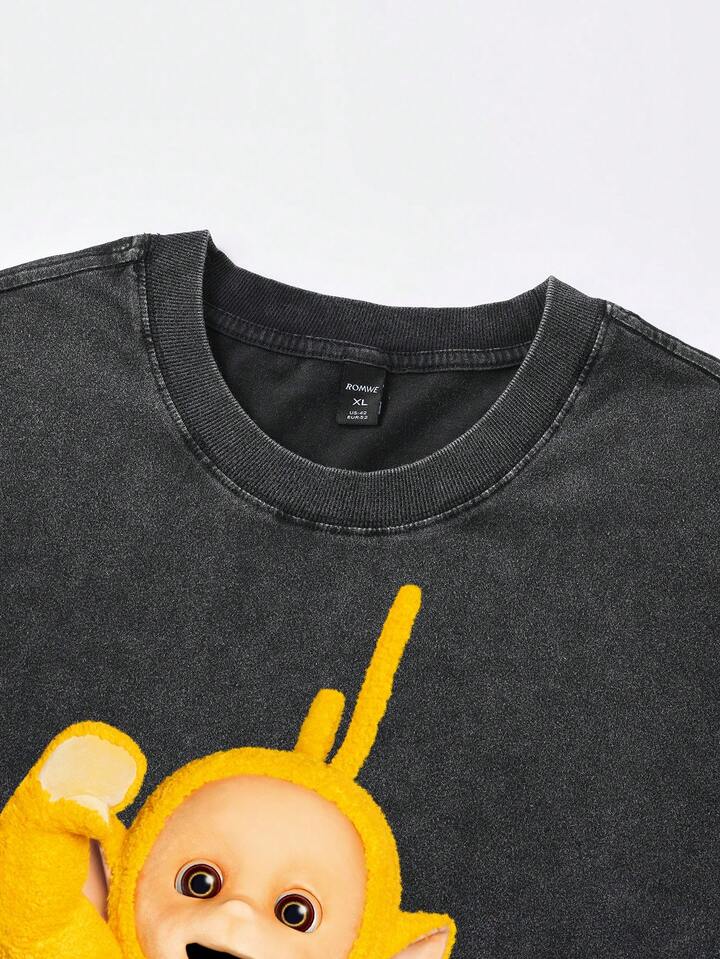 Teletubbies X ROMWE T-shirt ample à motif graphique de dessin animé délavé pour hommes
