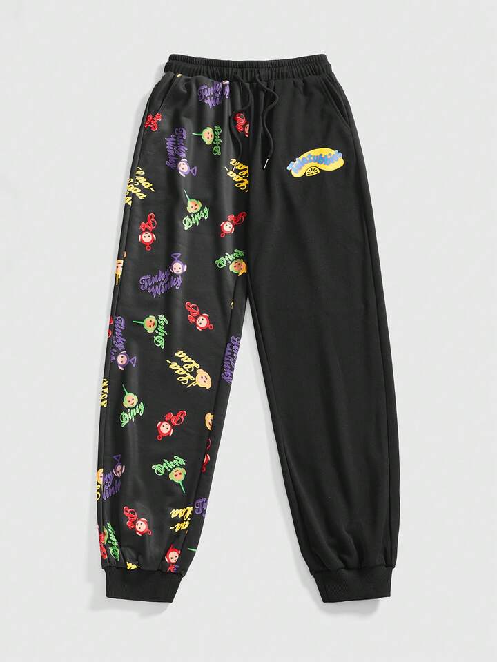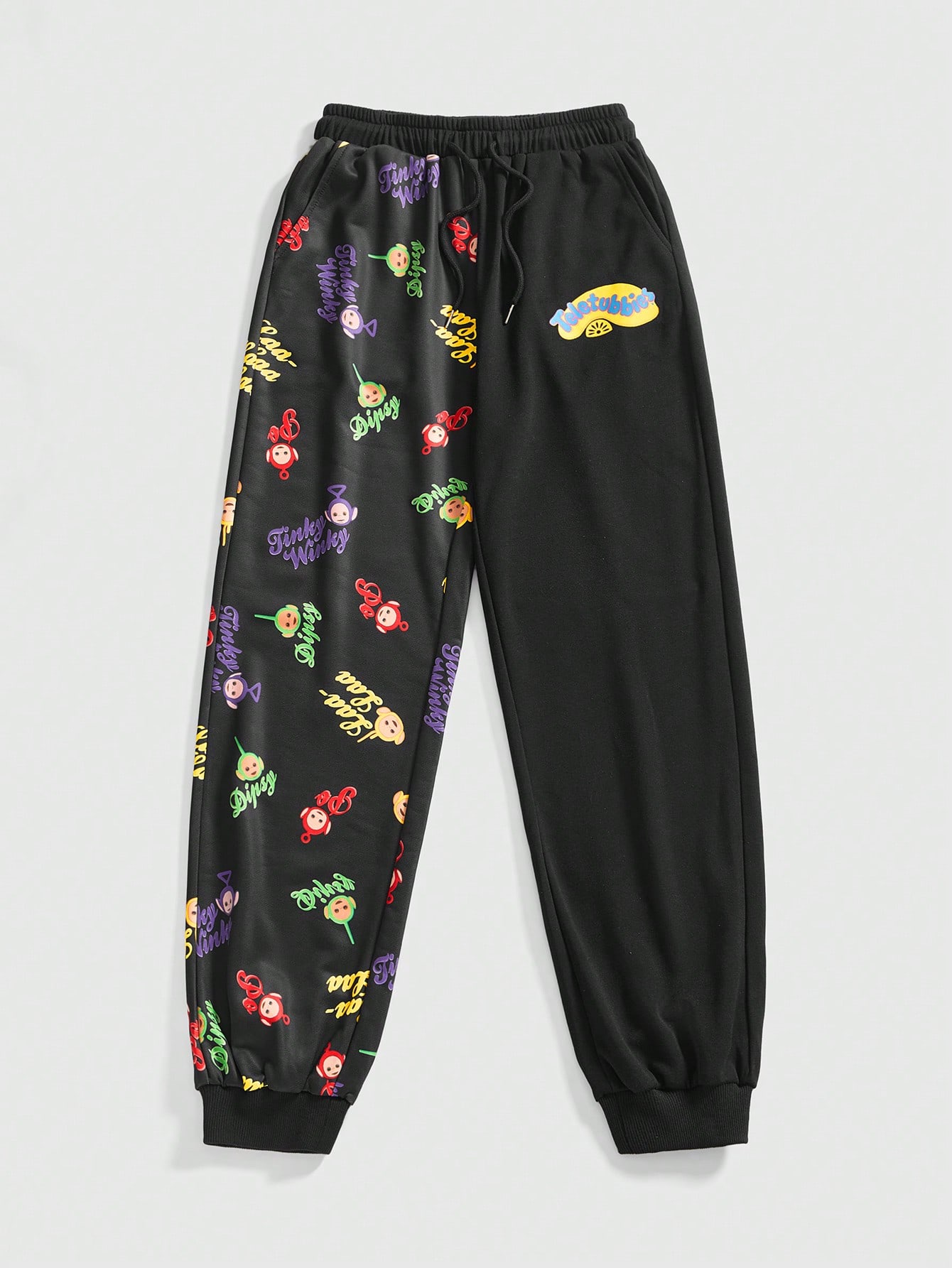 Teletubbies X ROMWE Pantalon de survêtement ample à cordon de serrage et motif de dessin animé pour femmes