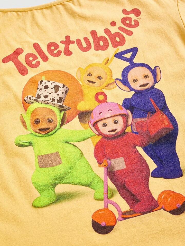 Teletubbies X ROMWE T-shirt ample à col asymétrique avec imprimé de lettre de dessin animé mignon, pour femmes, décontracté, pour tous les jours et les trajets, été