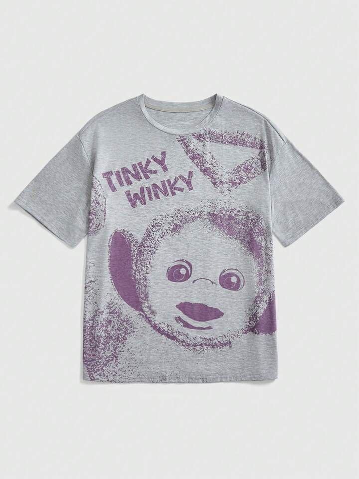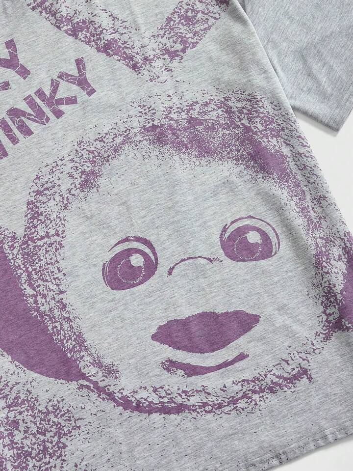 Teletubbies X ROMWE T-shirt ample à manches courtes, col rond, avec lettres et graphiques de dessins animés pour femmes