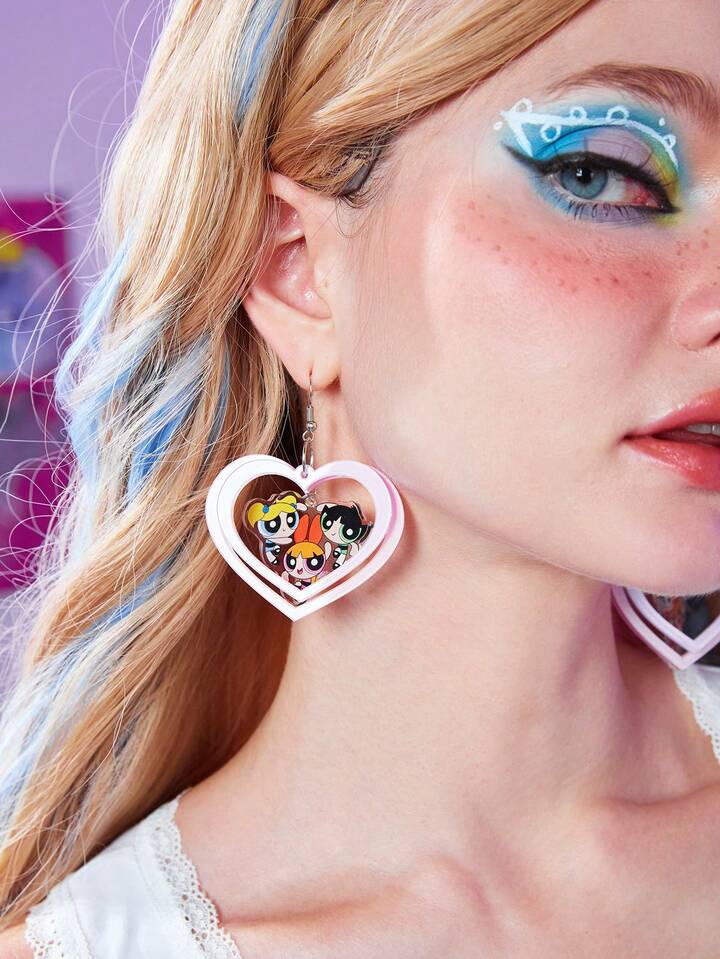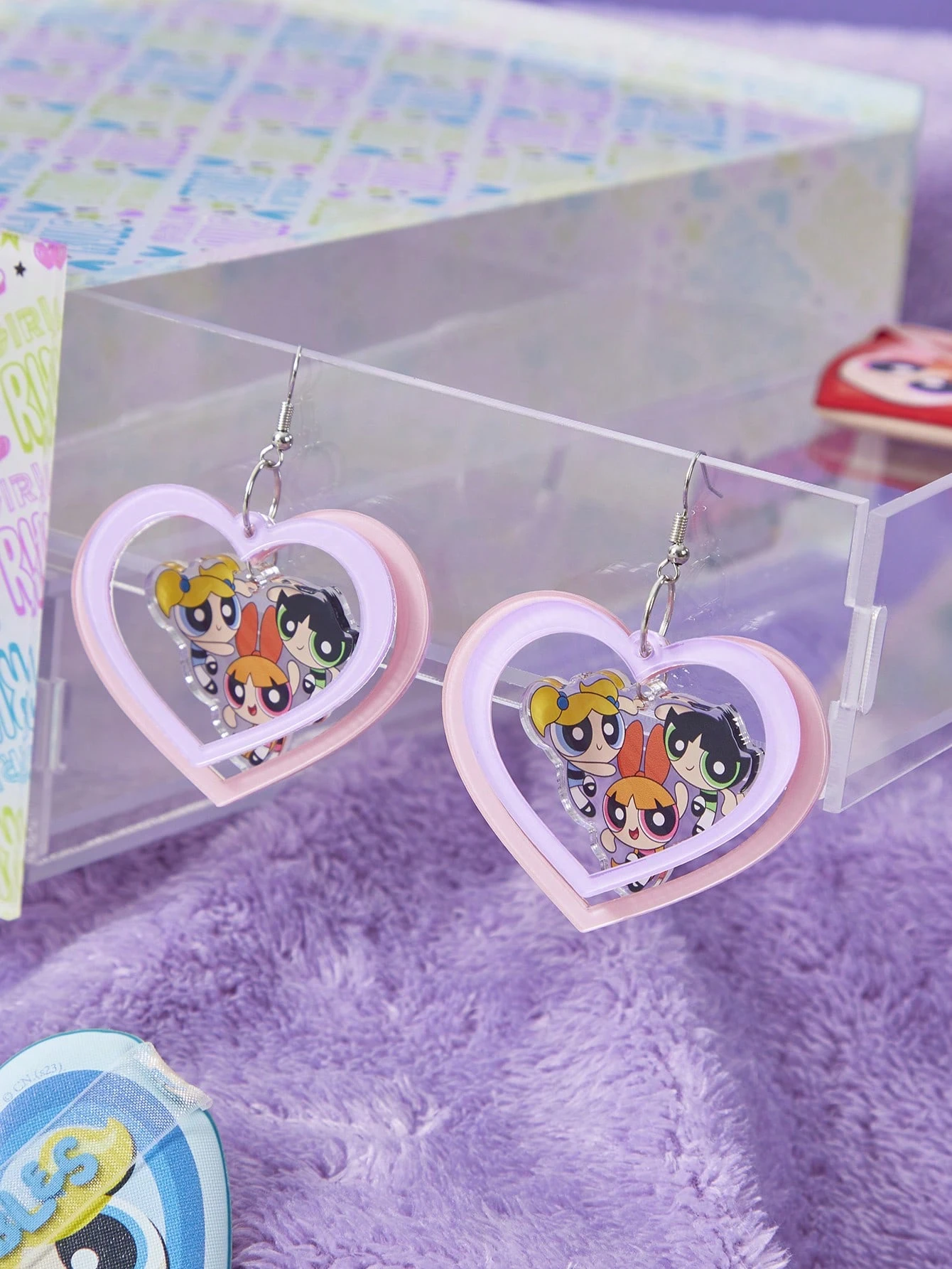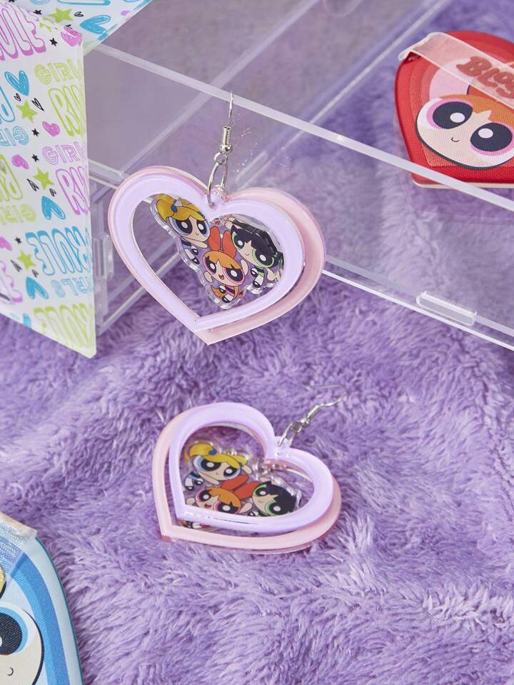 The Powerpuff Girls | ROMWE 1 paire Pendants D'oreilles Mignon Acrylique Dessin Animé Cœur Pour Femme Pour Décoration Quotidienne