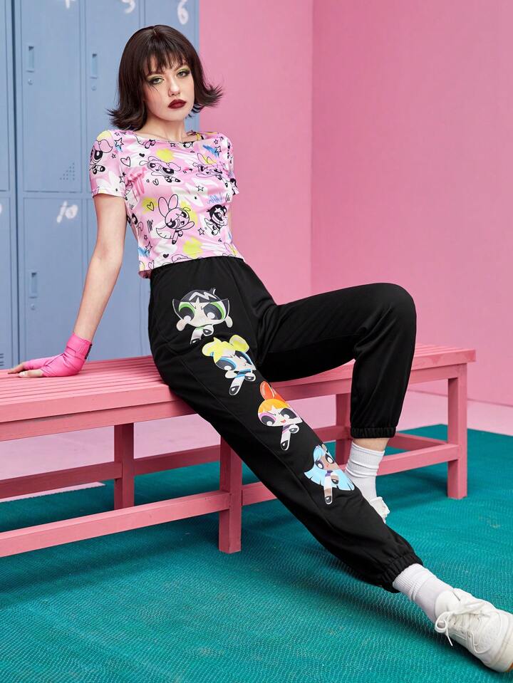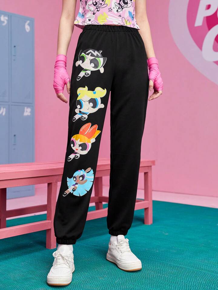 The Powerpuff Girls | ROMWE Pantalon De Survêtement Dessin Animé Taille Élastique