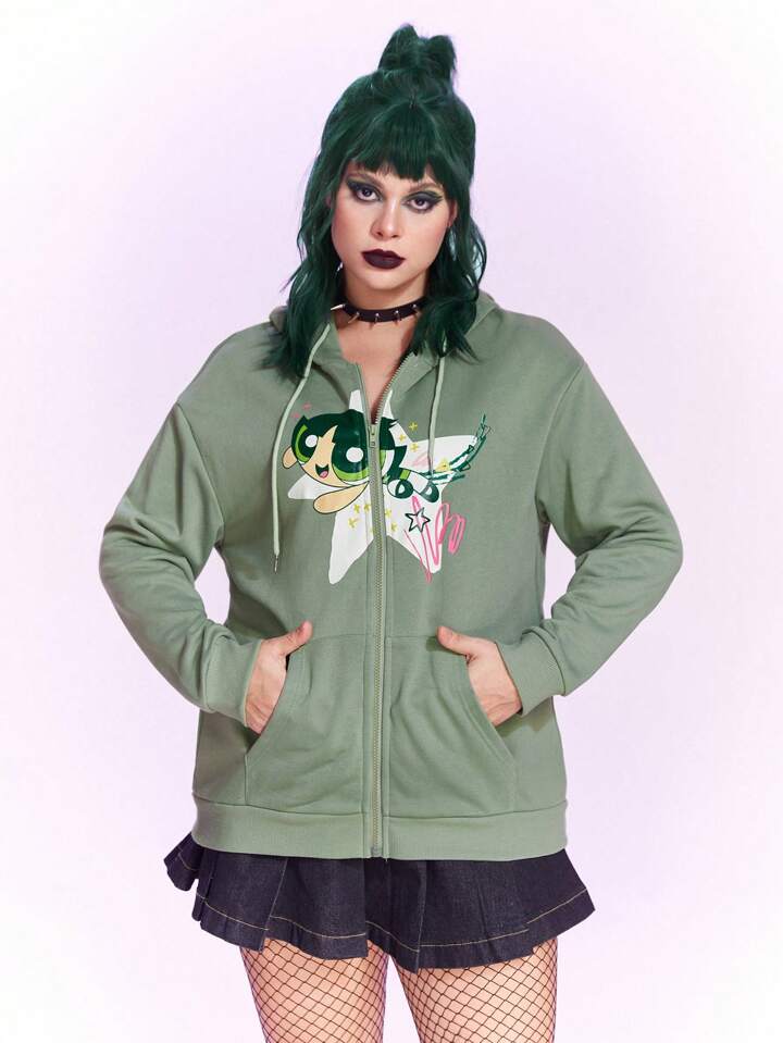 The Powerpuff Girls | ROMWE Sweat À Capuche Zippé Avec Graphisme De Caricature Pour Adultes