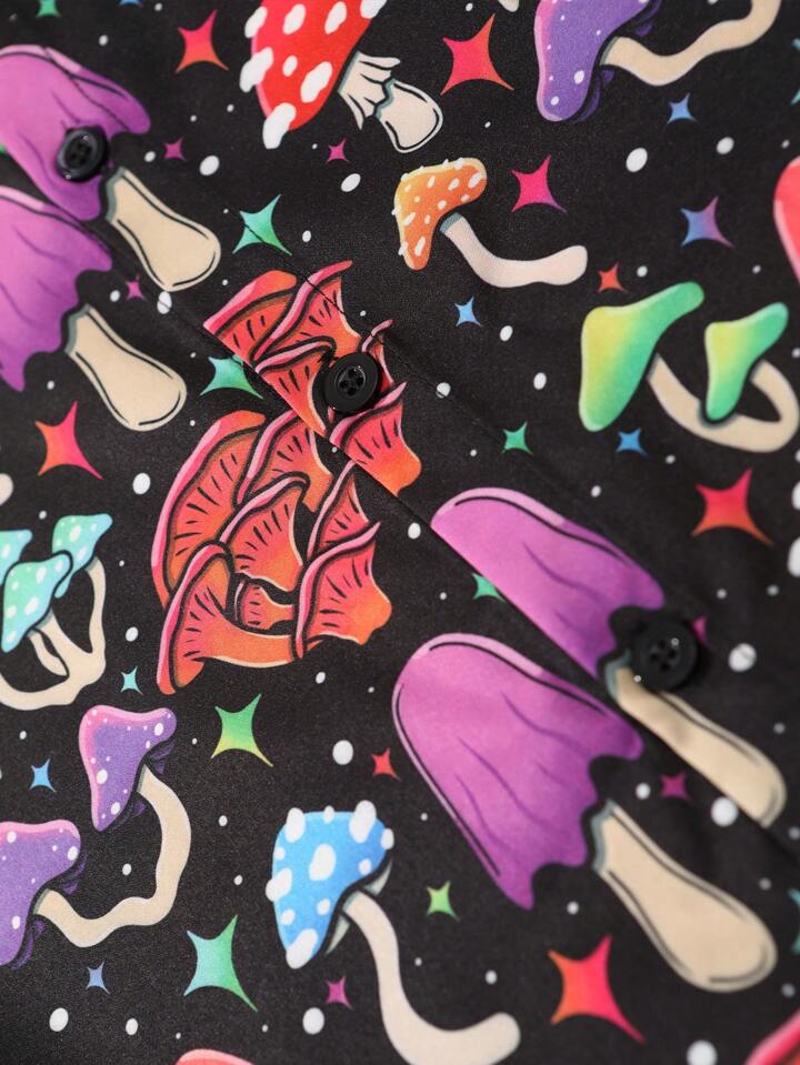 ThisUniqueVibe Chemise de plage à manches courtes avec imprimé champignon pour homme, école