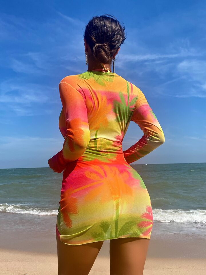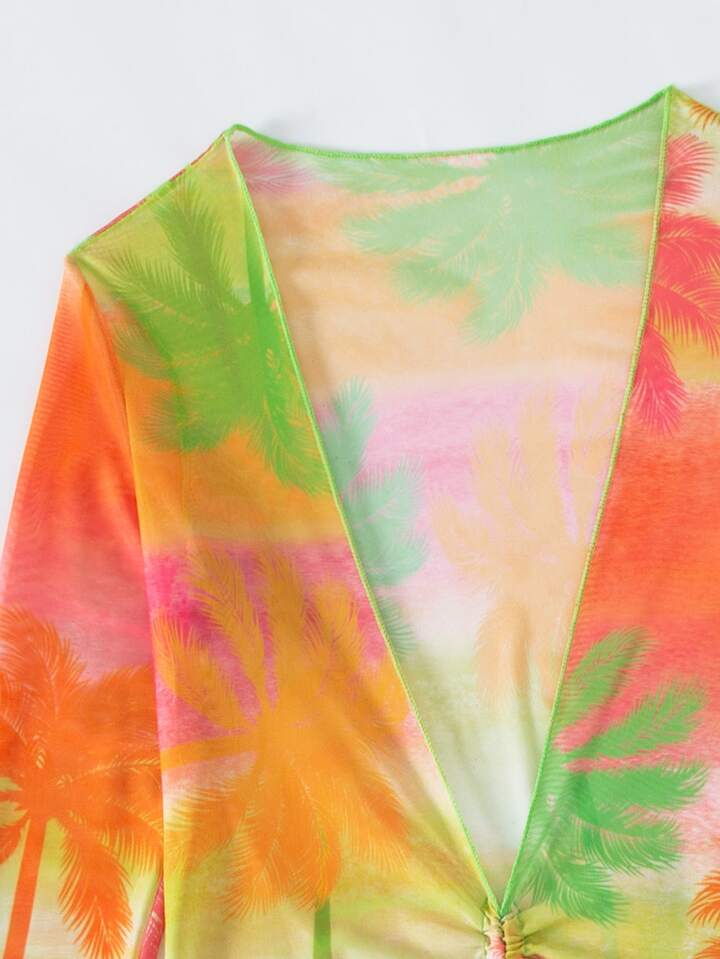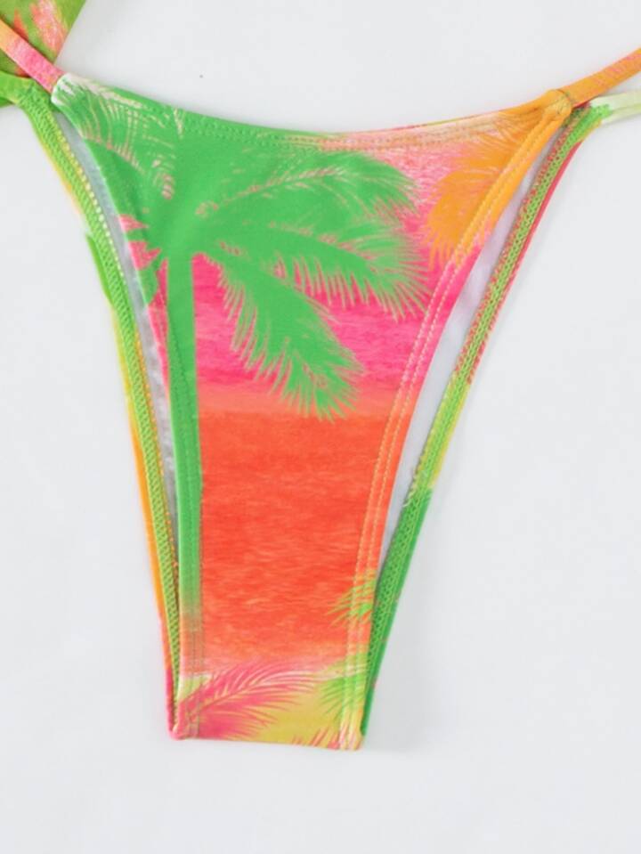 Ensemble de bikini d'été de plage à cordons de serrage teints avec bretelles froncées et trous pour les pouces