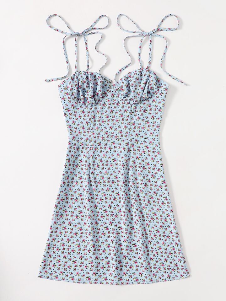 Robe froncée à épaules nouées avec imprimé marguerite
