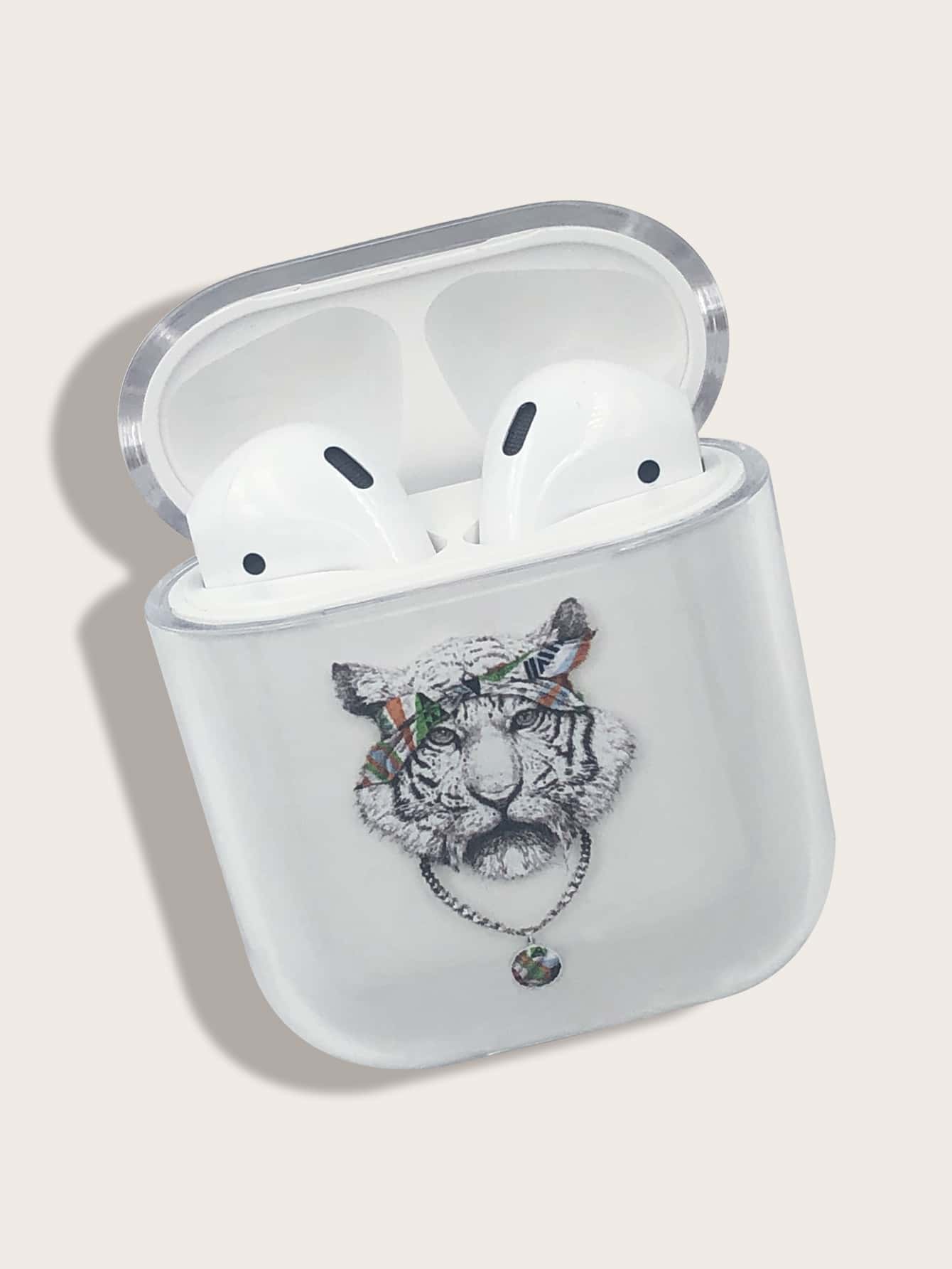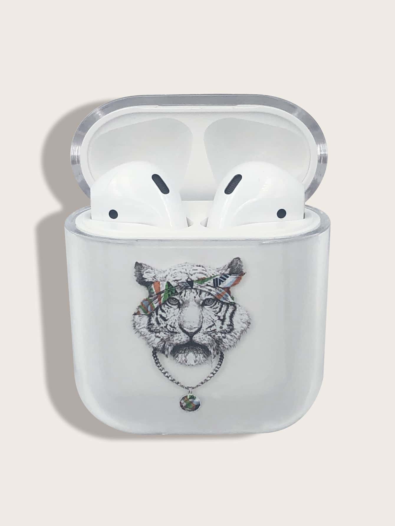 Étui à Airpods transparent à imprimé tigre