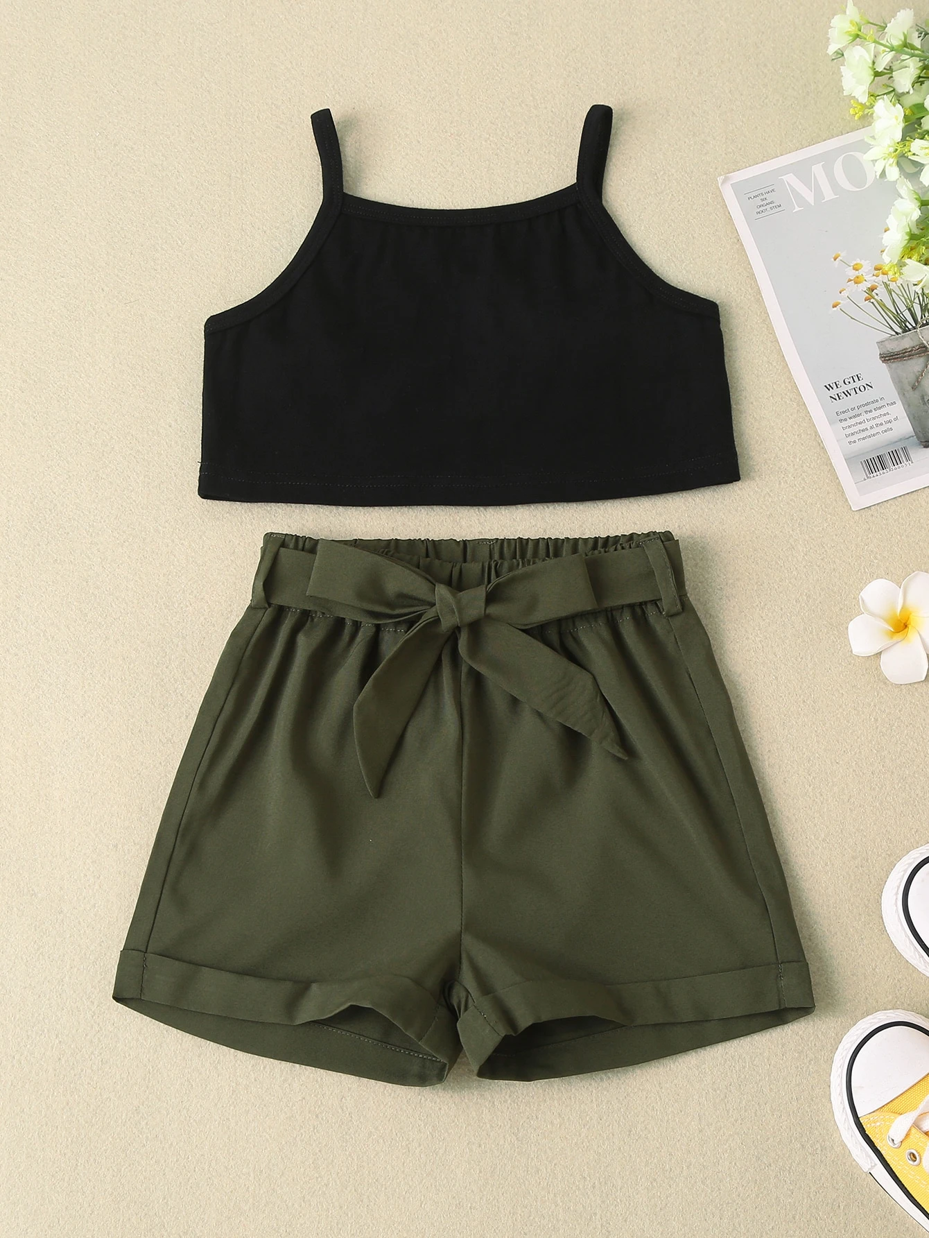 Ensembles deux pièces fille bas-âge Ceinture Casual Blocs de couleur