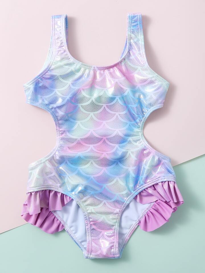 Maillot de bain une pièce dégradé à volants à motif sirène