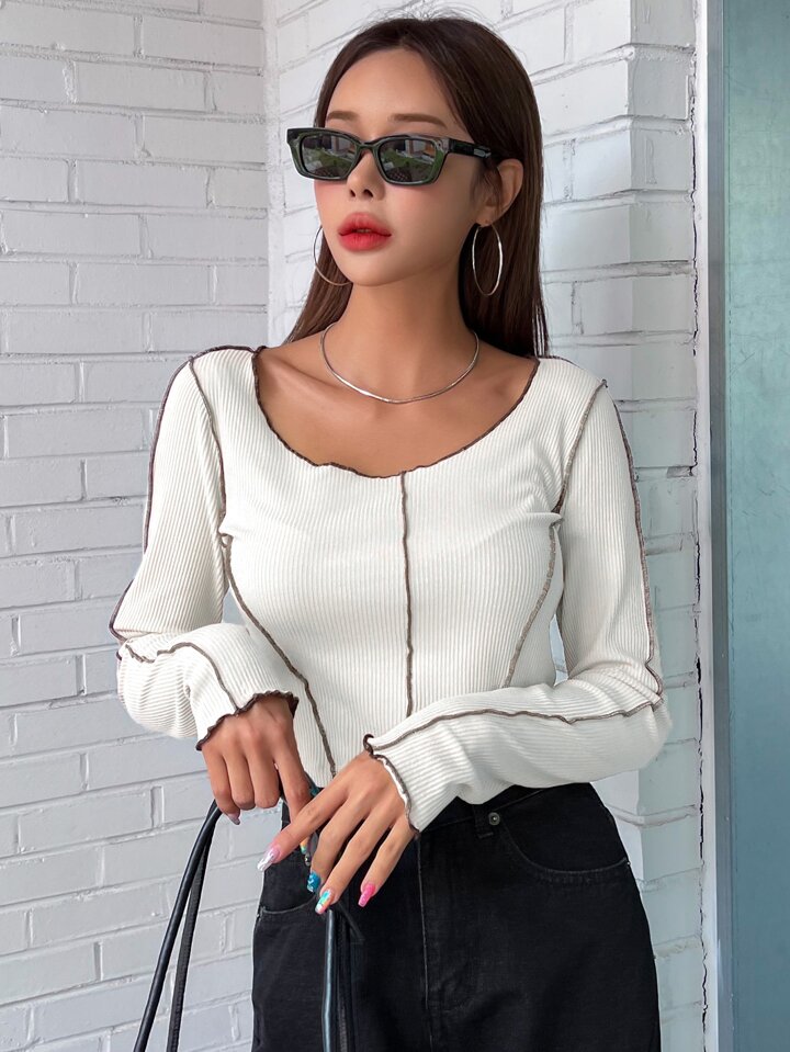 Tee-shirt À Encolure Arrondie Et À Surpiqûres Supérieures