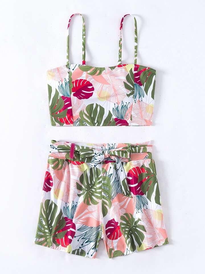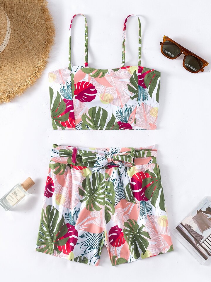 Short de bikini à ceinture tropical