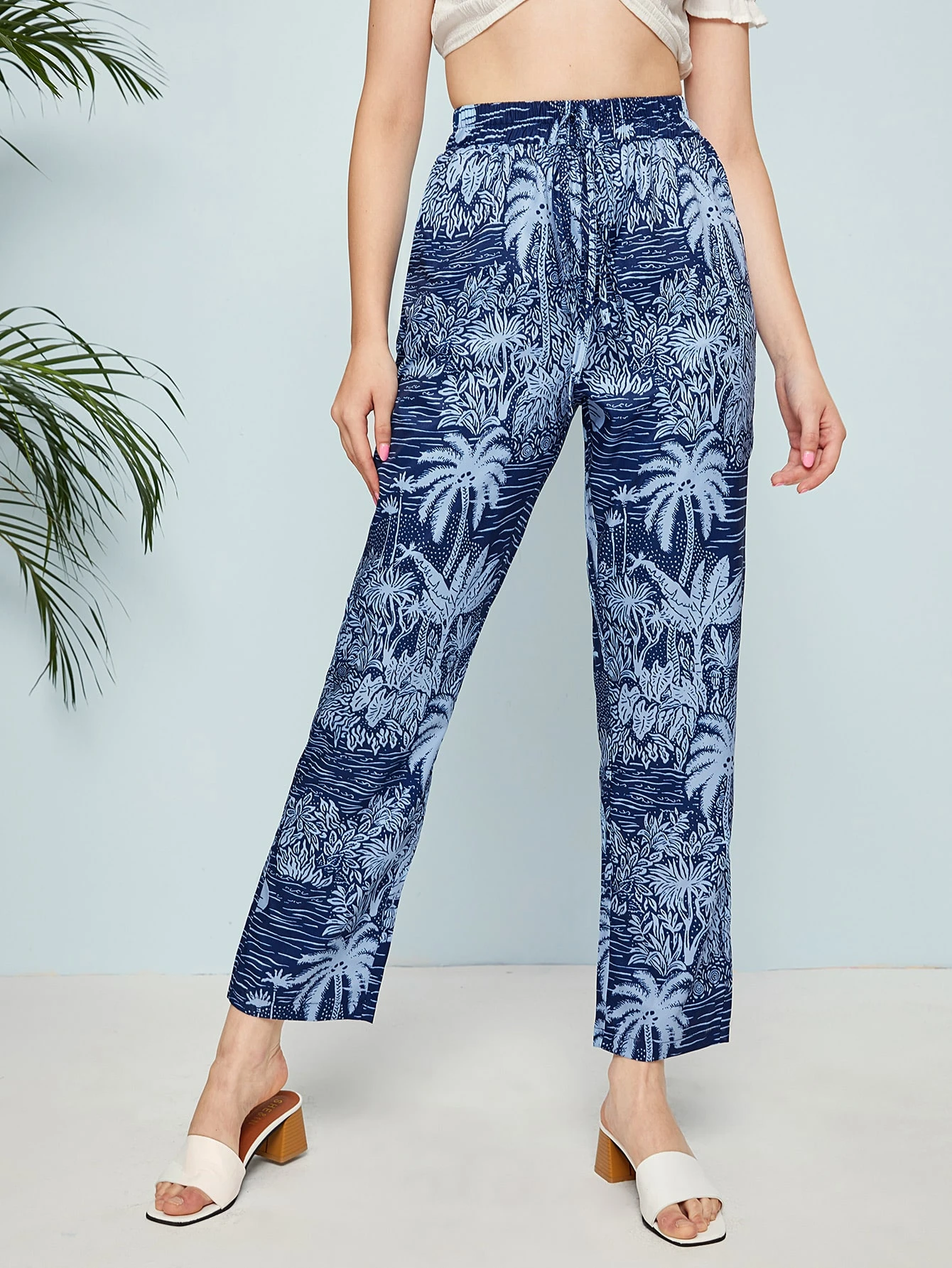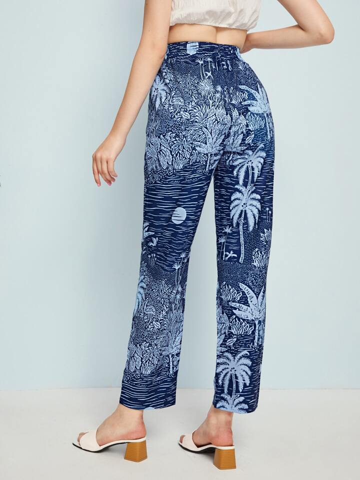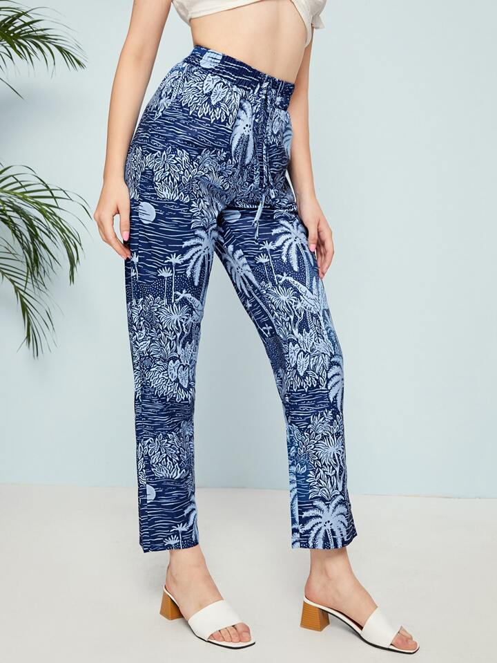 Pantalon avec motif tropical et cordon