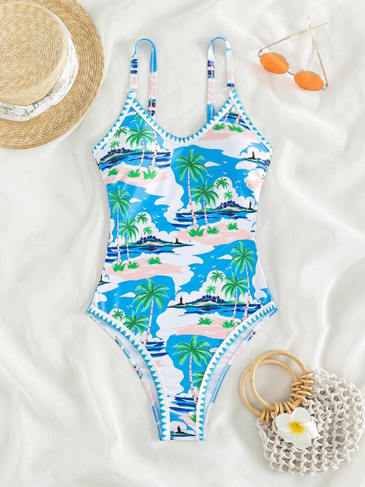 Maillot de bain une pièce à imprimé tropical à liseré contrastant