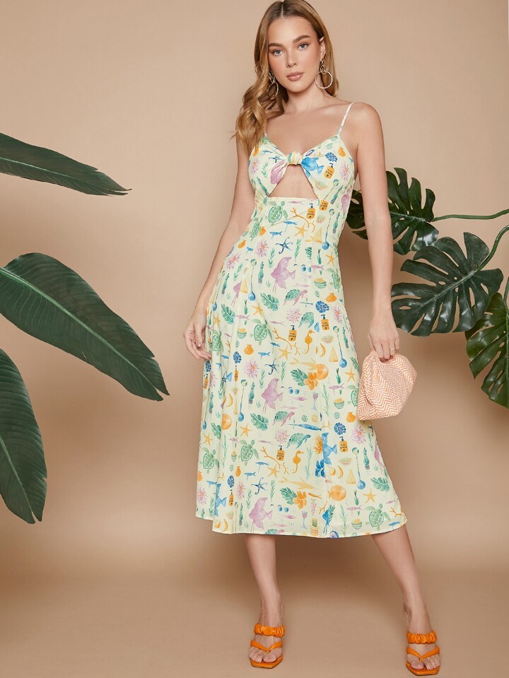 Robe à imprimé tropical froncé torsadé découpe