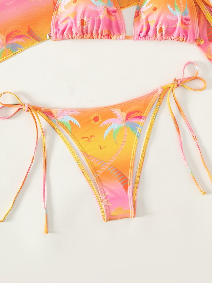 Ensemble bikini de plage d'été avec imprimé tropical et liens sur les côtés et son cache-maillot assorti