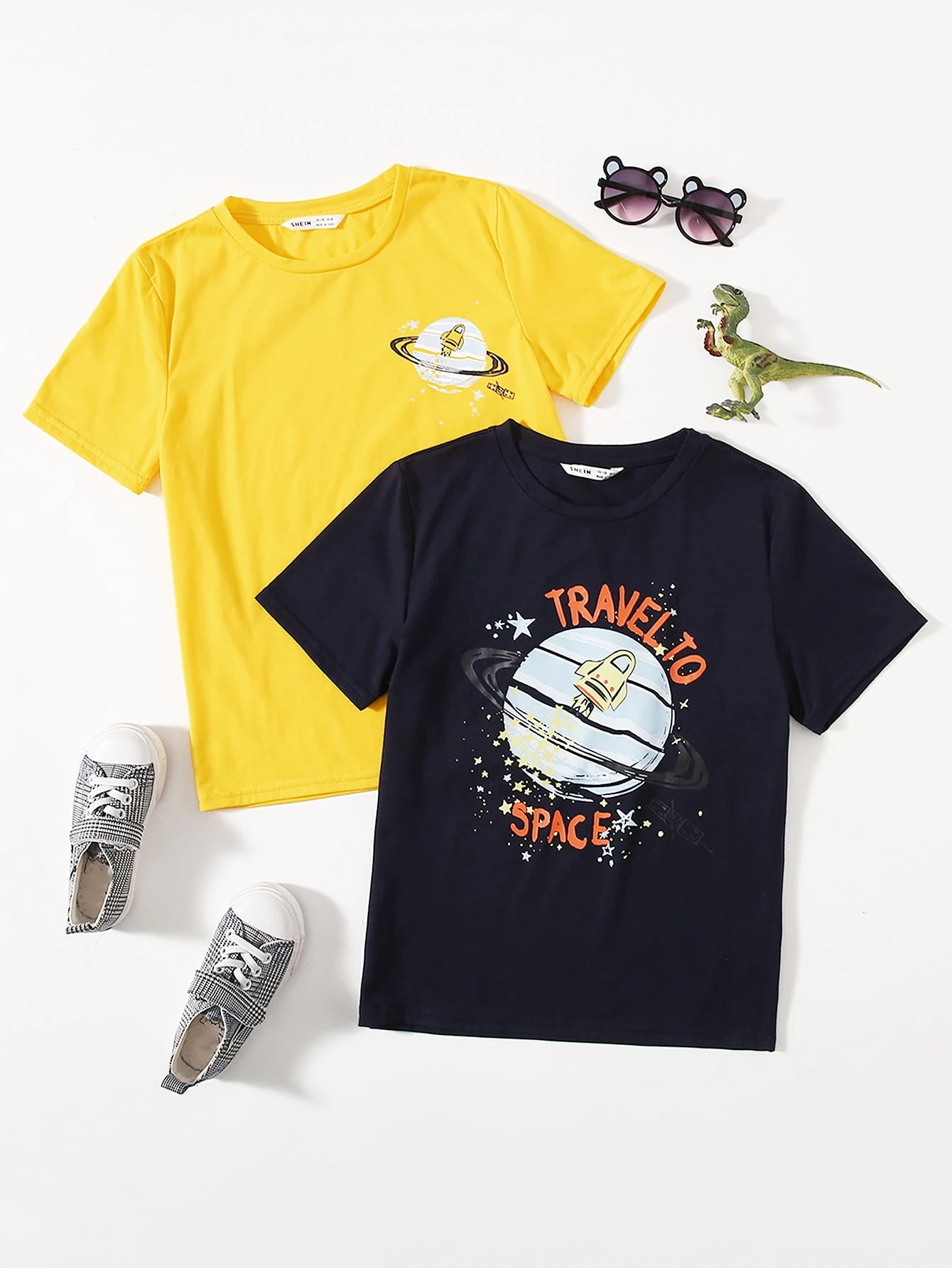 2 paquets de t-shirts imprimés planètes pour garçons préadolescents