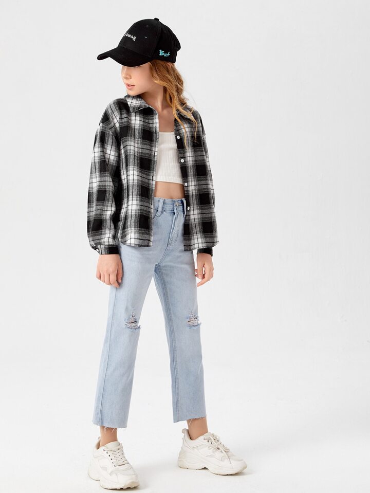Chemisier À Carreaux À Épaules Basses Pour Fille Préadolescente