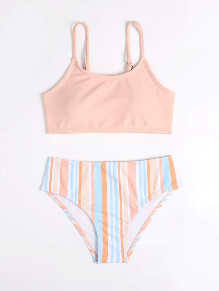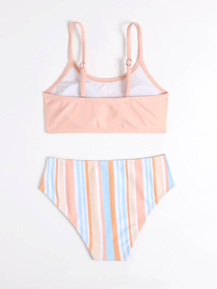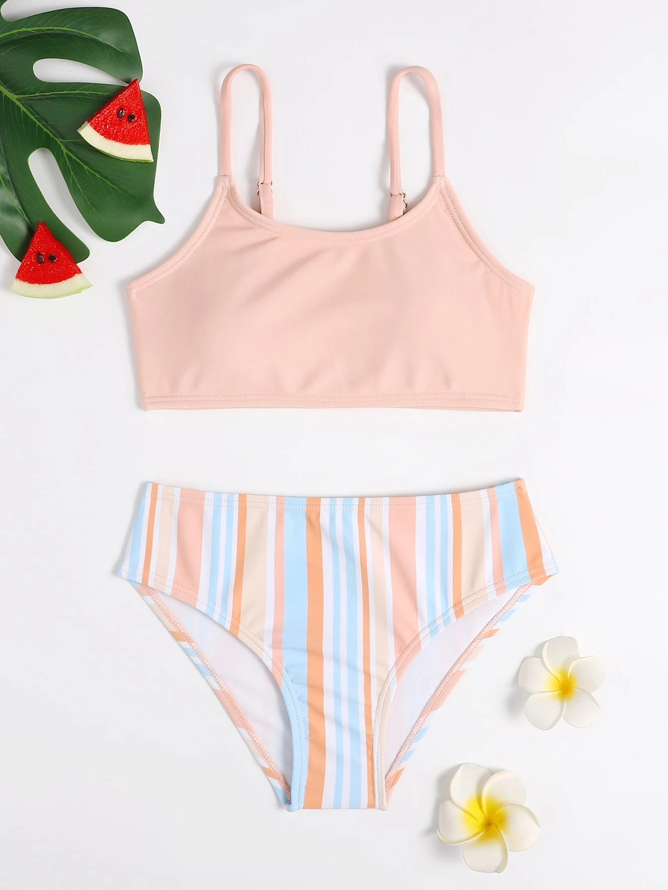 Ensemble bikini rayé pour fille pré-ado, plage d'été