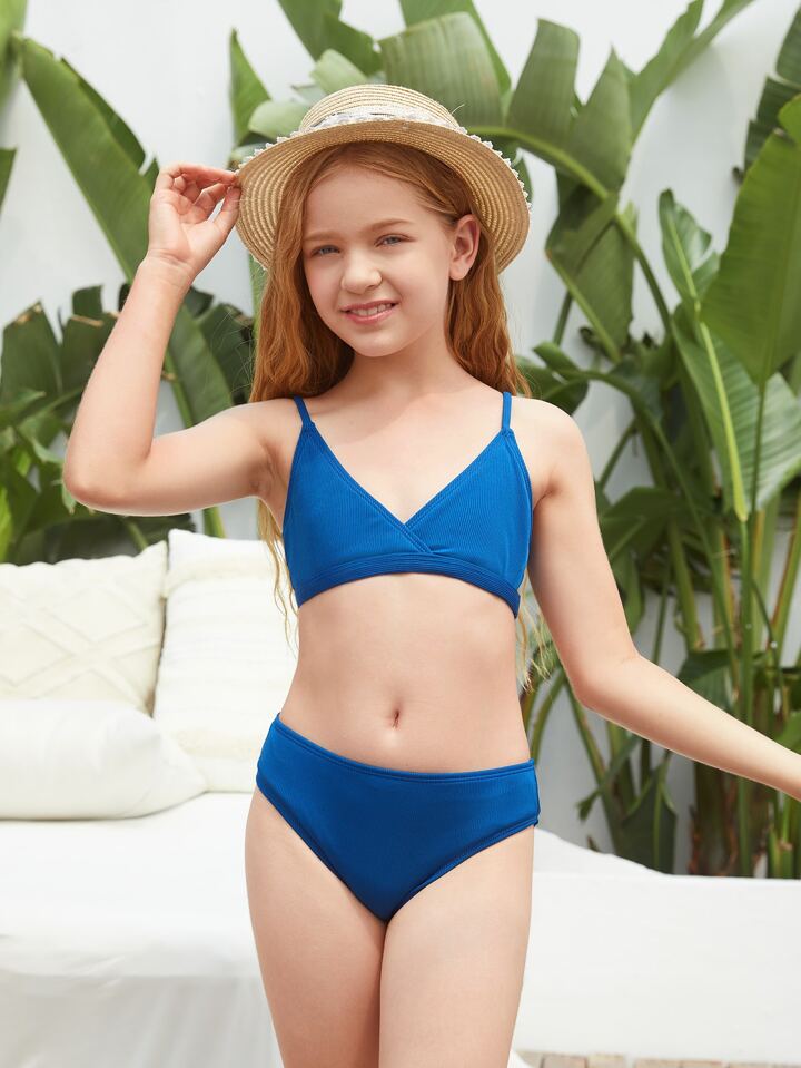 Ensemble de bikini col V pour pré-adolescente, été plage