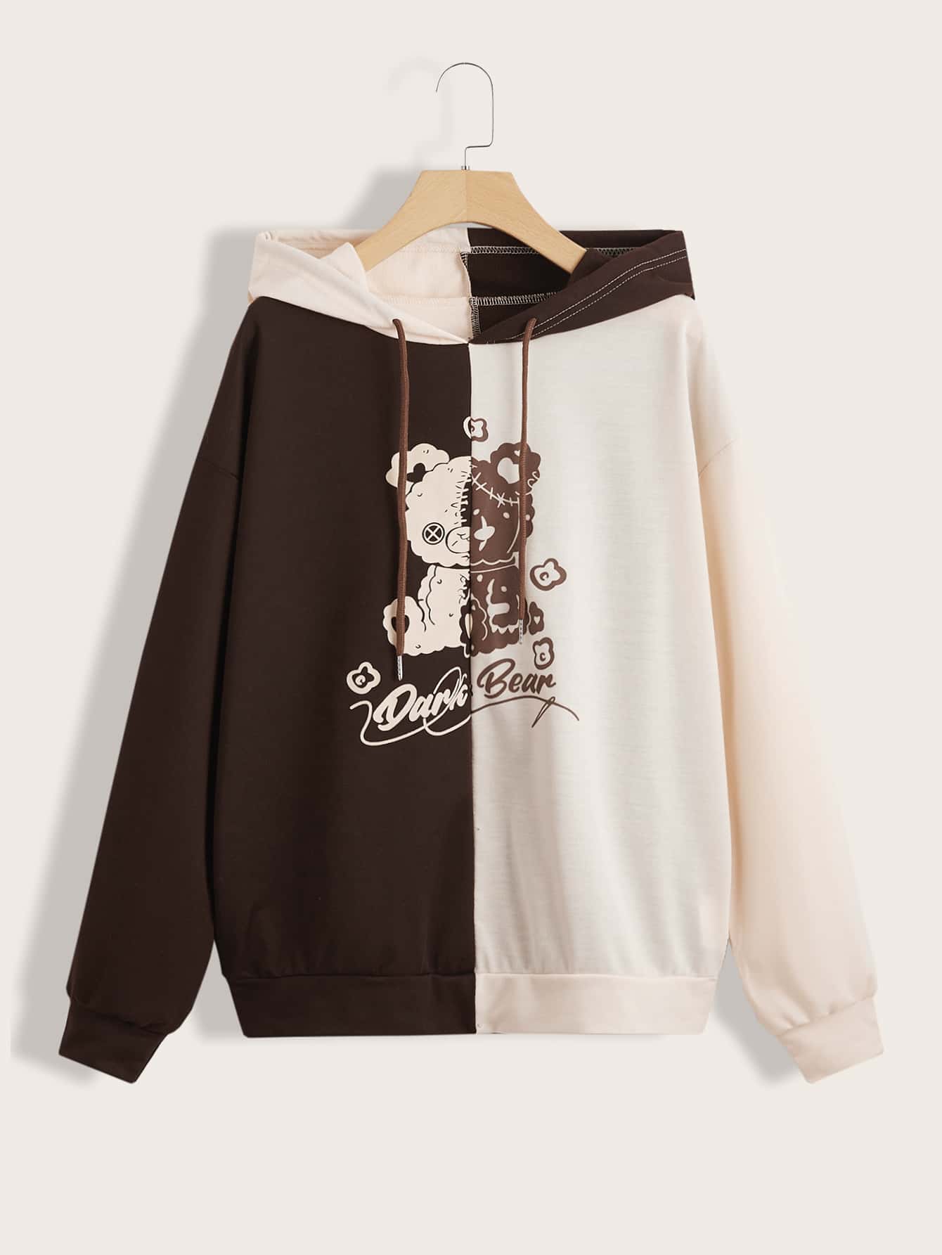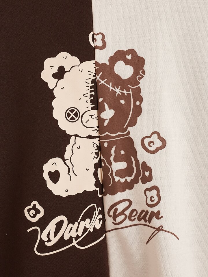 Sweat-shirt à capuche bicolore ours à lettres