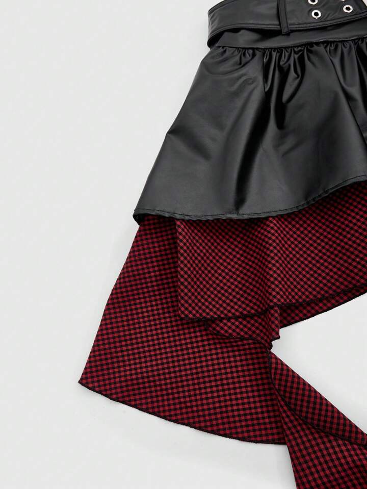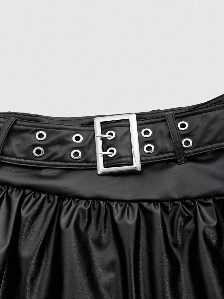 Jupe en PU ceinturée avec boucle à œillets bicolore, école