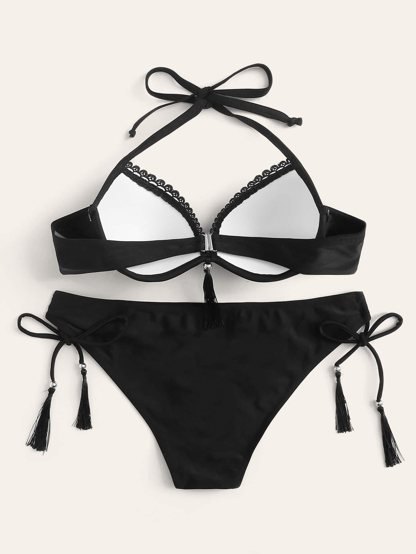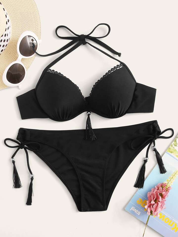 Ensemble bikini à armatures avec bretelles tour de cou et liens latéraux, plage d'été