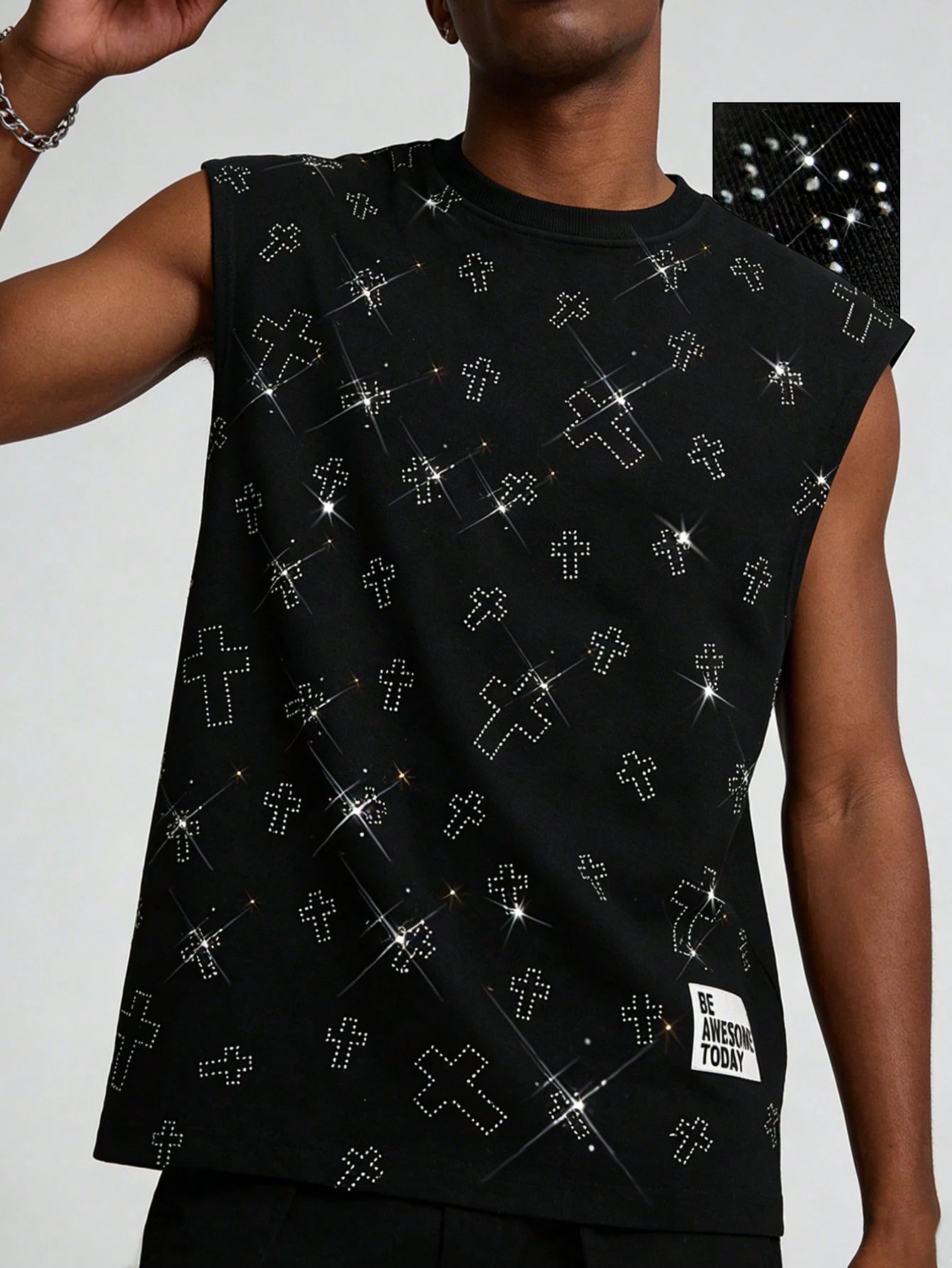 Débardeur unisexe décontracté et avec ornements de strass, débardeur col rond pour sports et loisirs