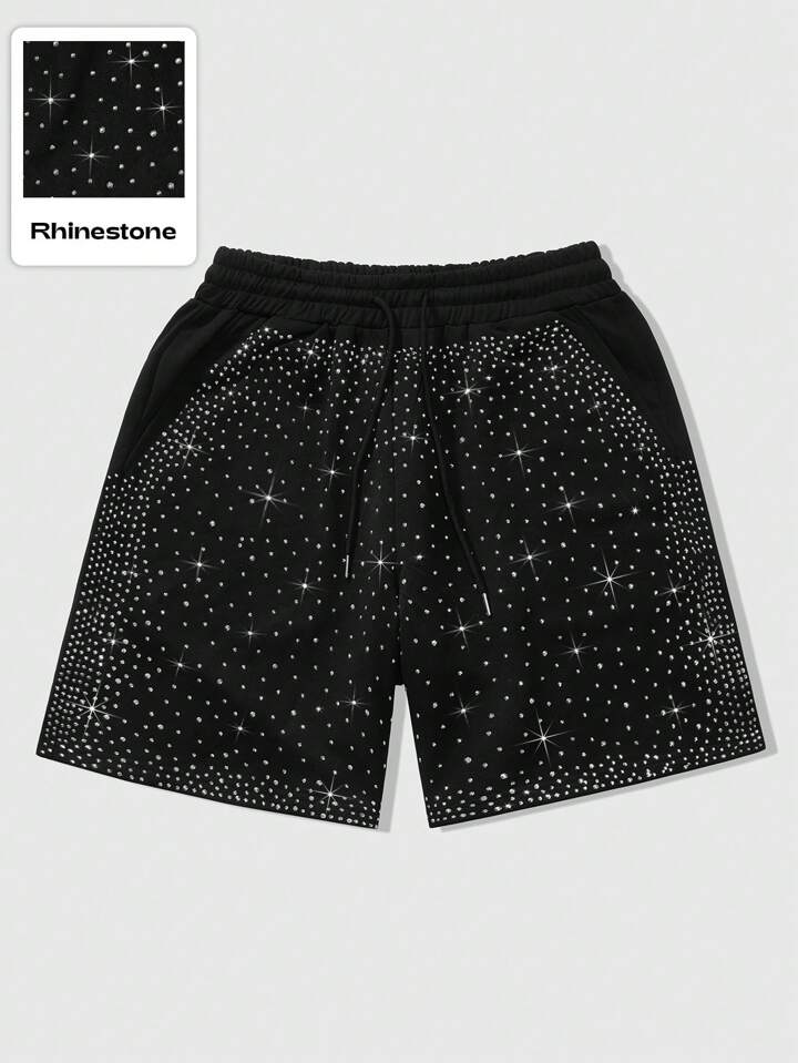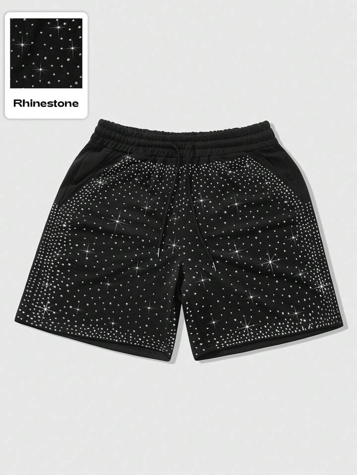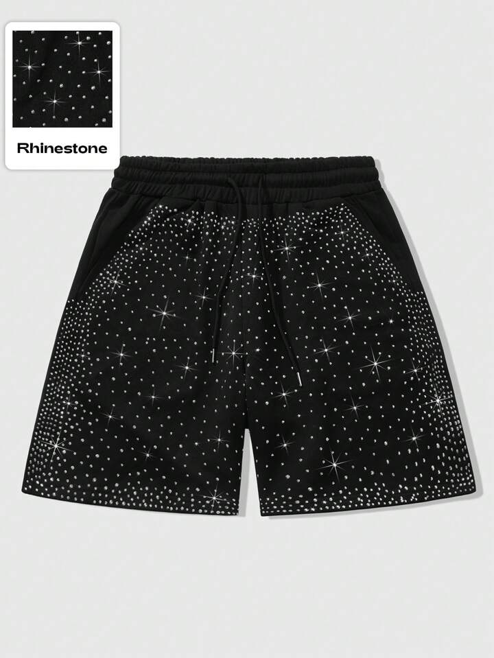 Street Life Short unisexe style de rue à motif imprimé de strass style américain