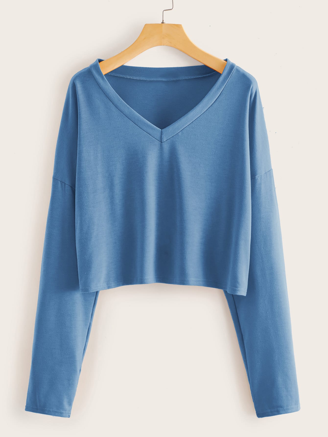T-shirt court unicolore avec col en V