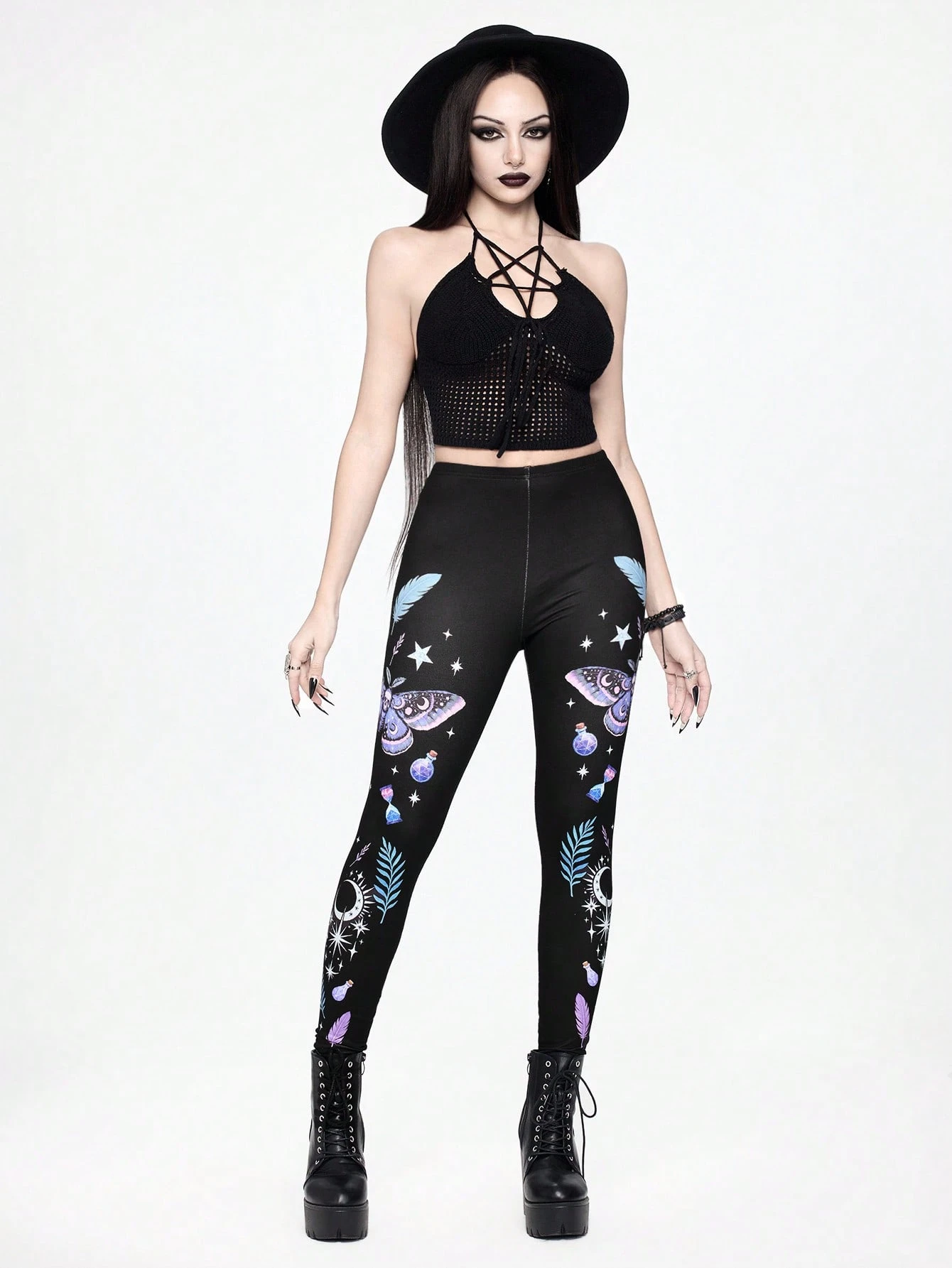 Legging moulant à imprimé papillon mystérieux gothique pour femmes, tenue de vacances