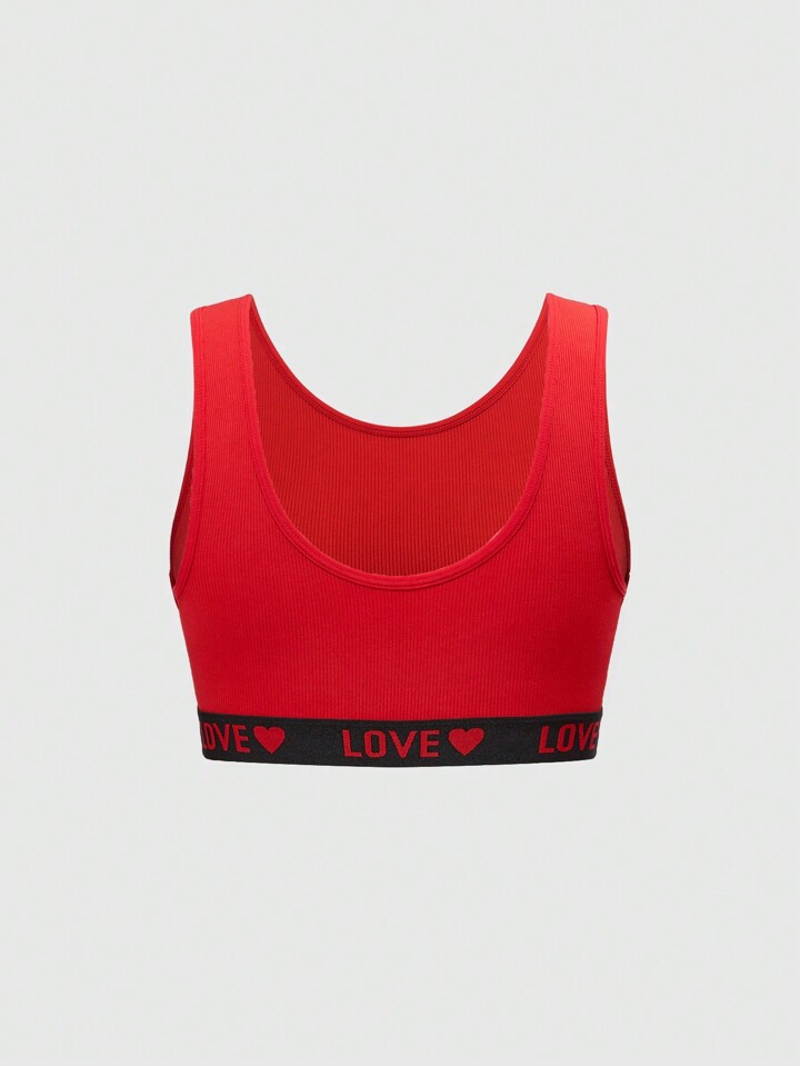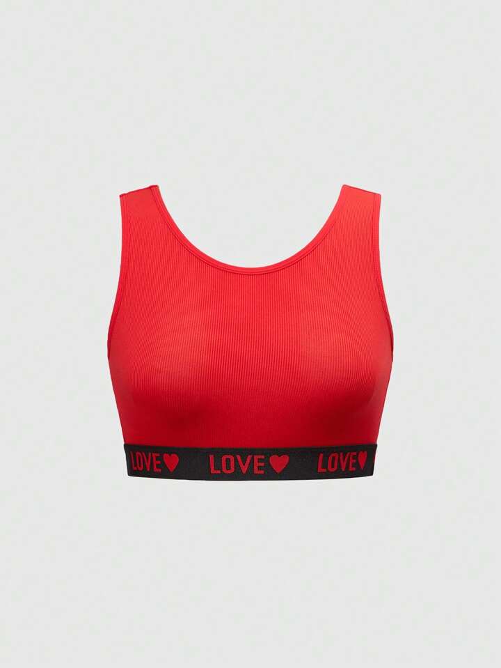 Ensemble de soutien-gorge sans fil élastique et patchwork avec texte anglais en forme de cœur romantique pour la Saint-Valentin