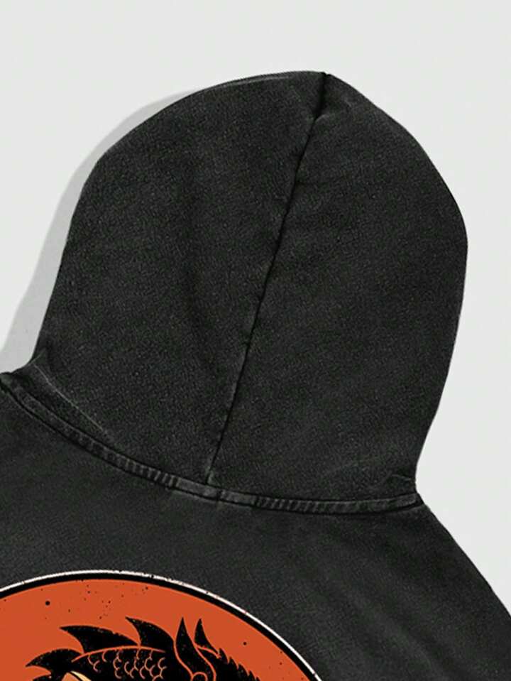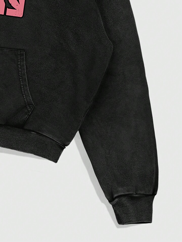 Vincenttrinidadart Sweat-shirt à capuche décontracté pour hommes avec lettres de bande dessinée et effet lavé acide
