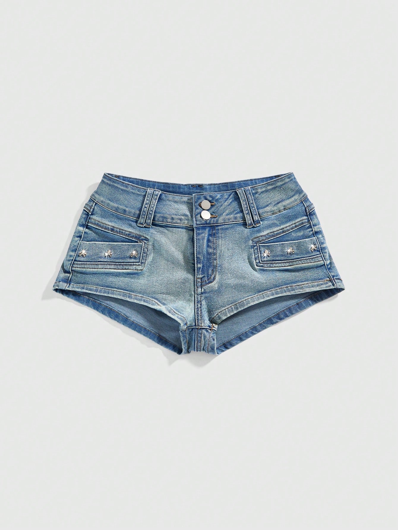 Short en jean sexy taille basse super vintage avec clous et crâne délavé pour femmes