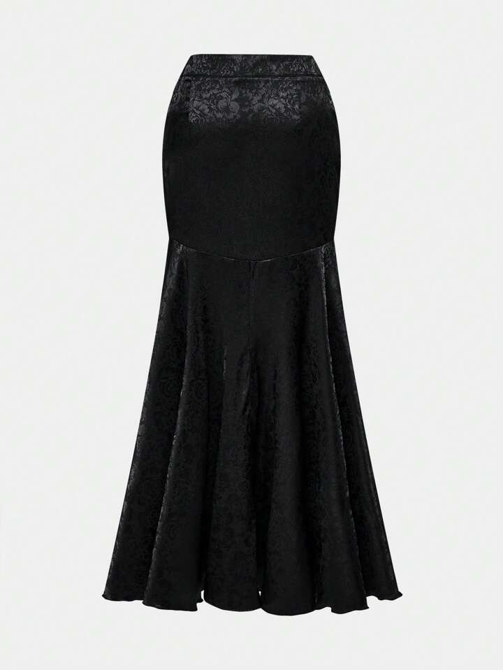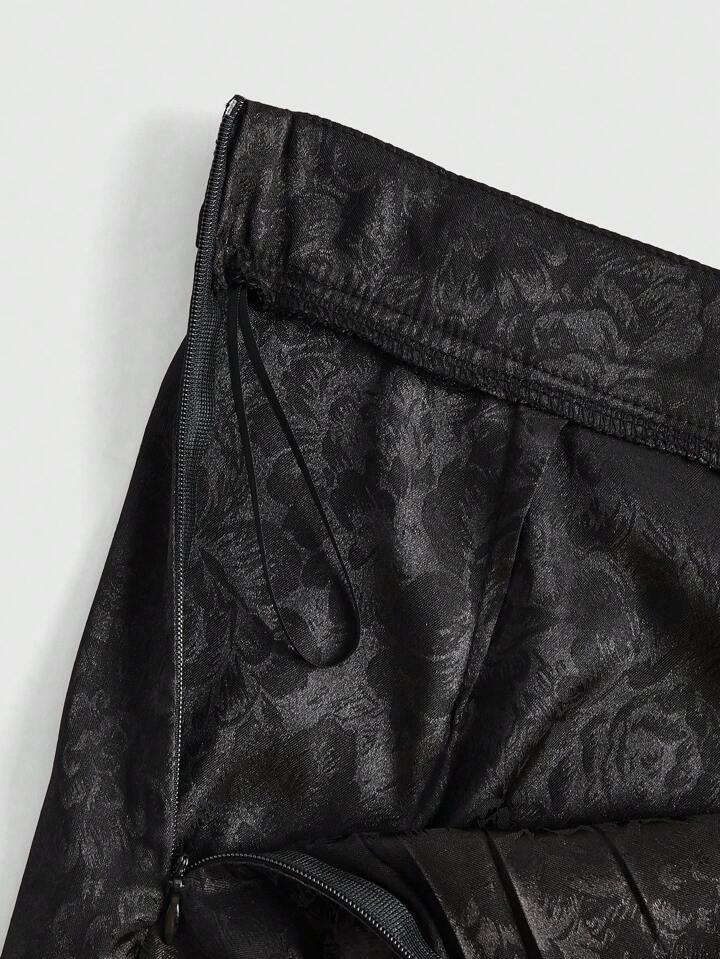 Jupe gothique vintage noire texturée avec bordure en dentelle pour femmes