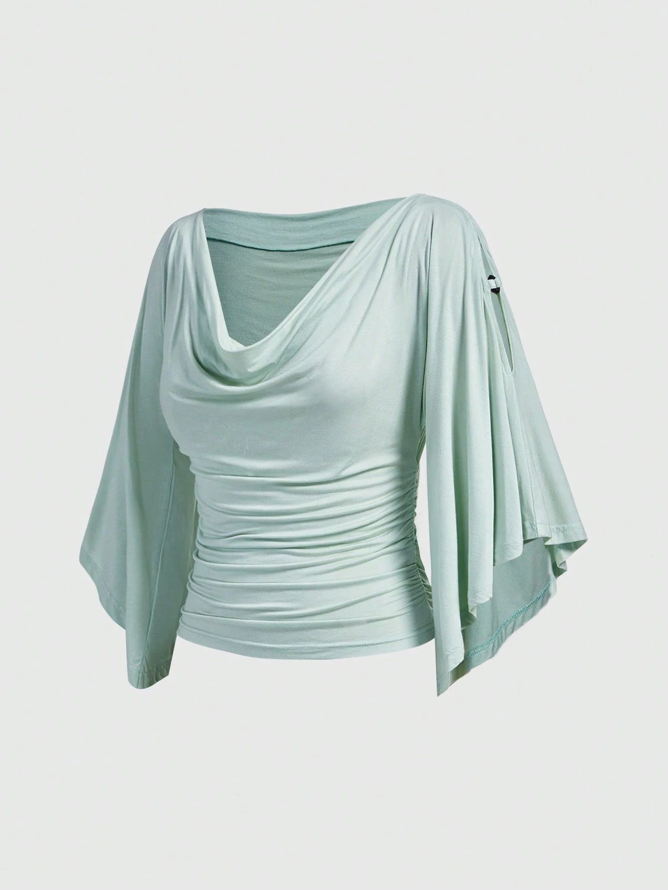 Hippie T-shirt femme à encolure bénitier, manches chauve-souris, taille cintrée, avec décoration de perles de bois vintage et épaules dénudées