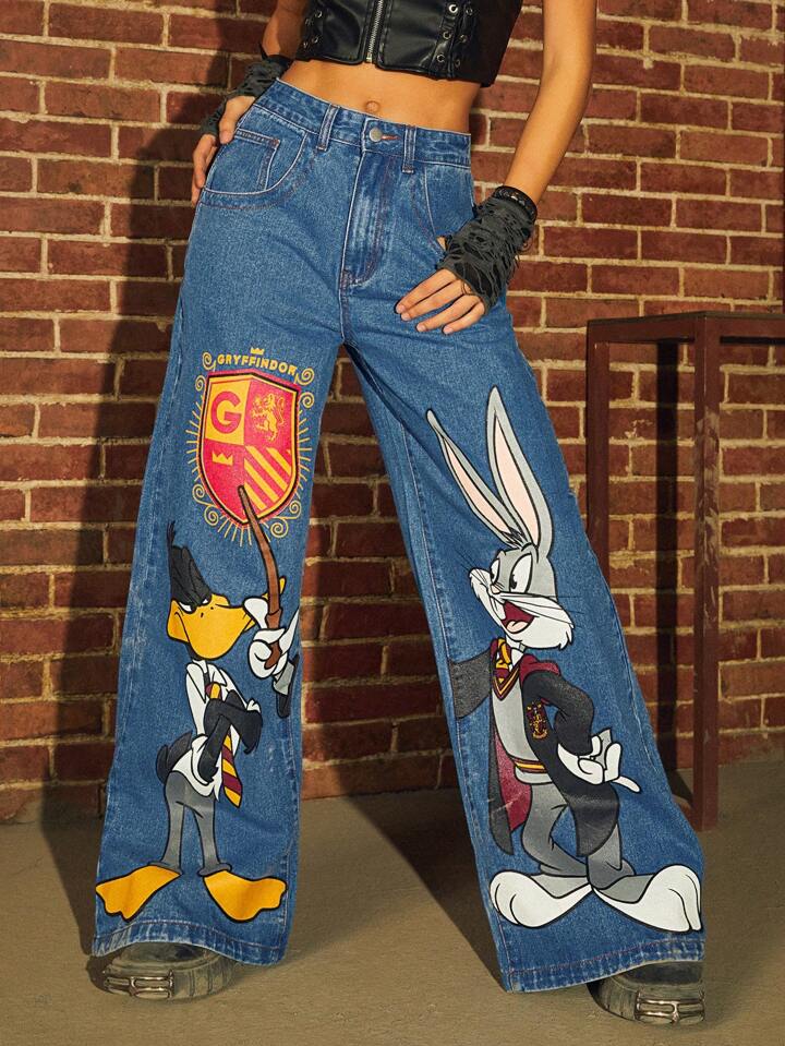 WB 100th | ROMWE Jean Dessin Animé Ample (Sans Ceinture)