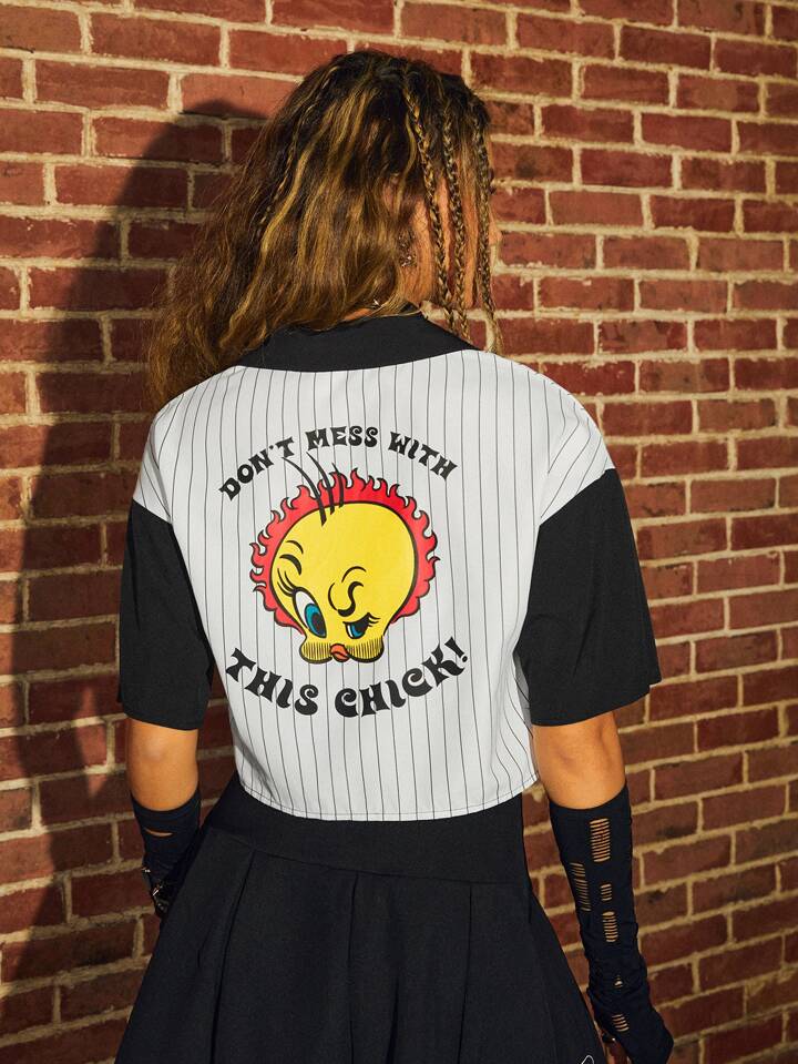 WB 100th | ROMWE Chemisier Court À Col Polo Rayé Avec Slogan Graphique