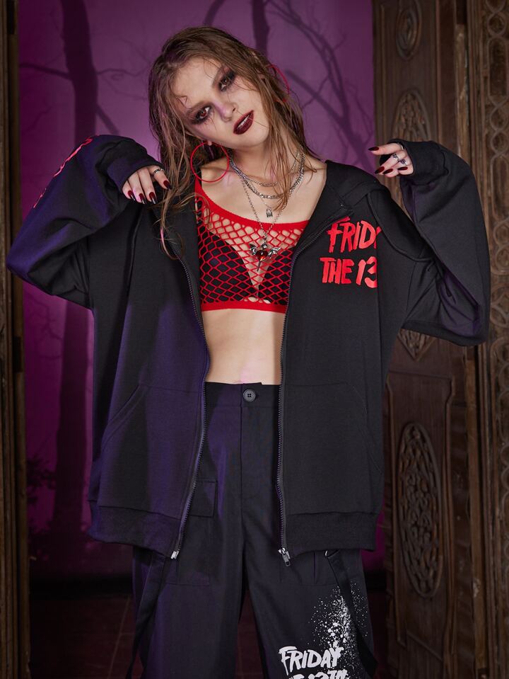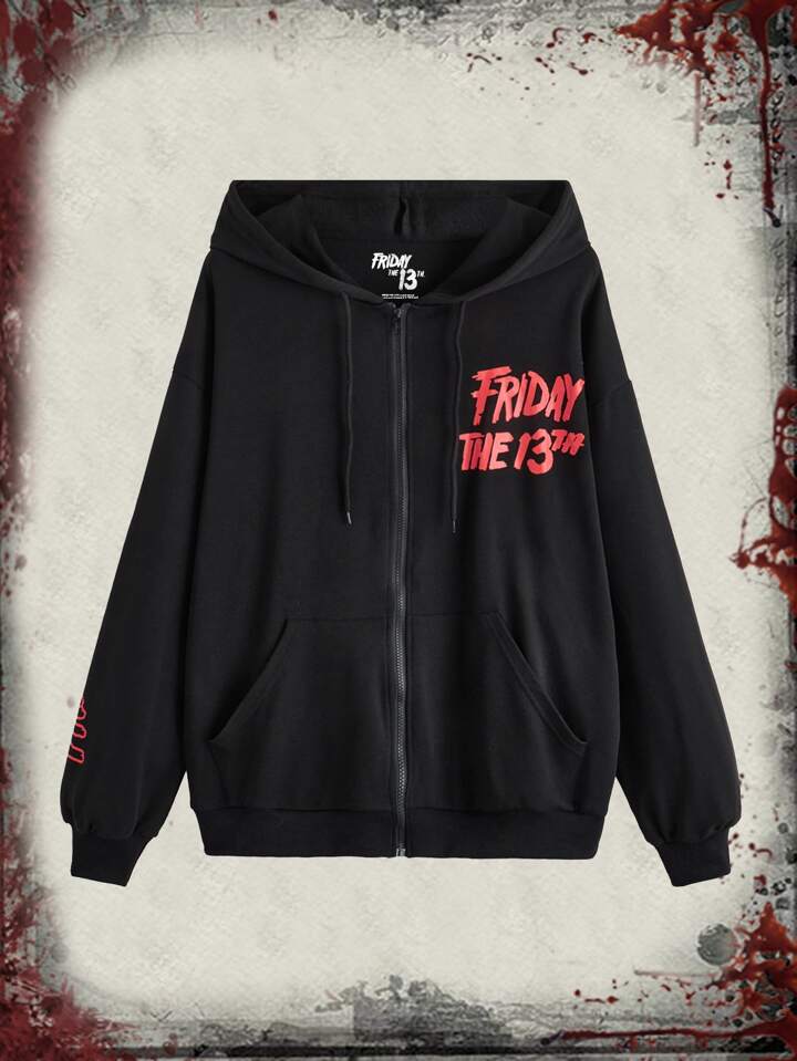 WB Horror | ROMWE Sweat-shirt à capuche à lettres à cordon