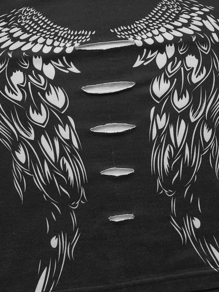 T-shirt court déchiré aile graphique