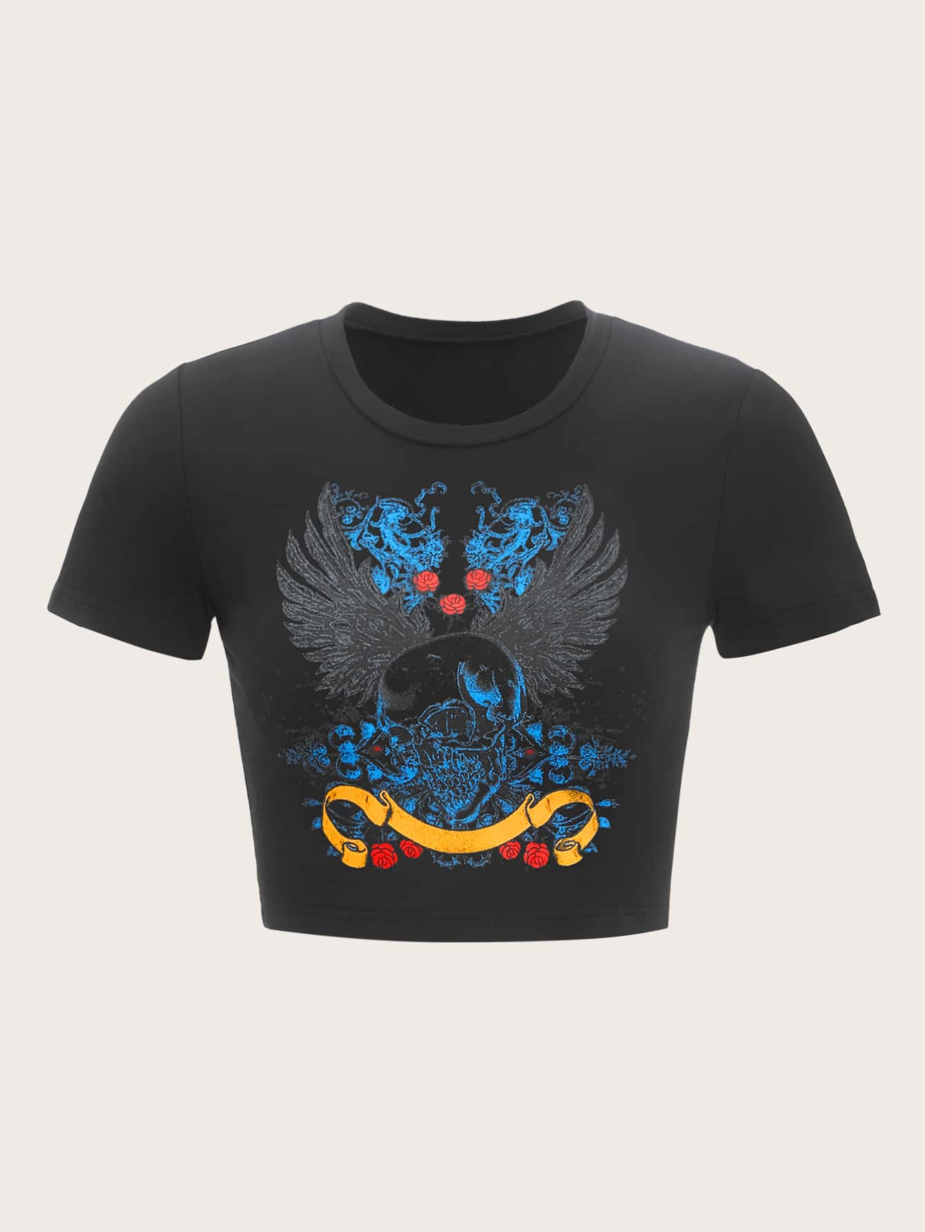 T-shirt aile à imprimé fleuri et squelette
