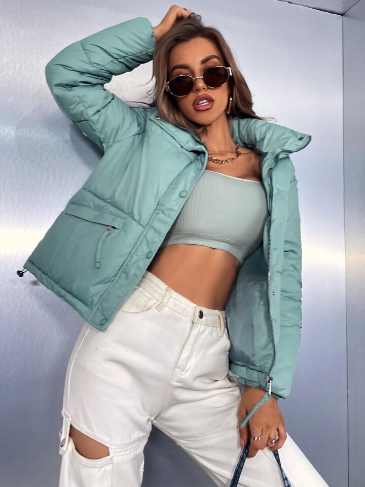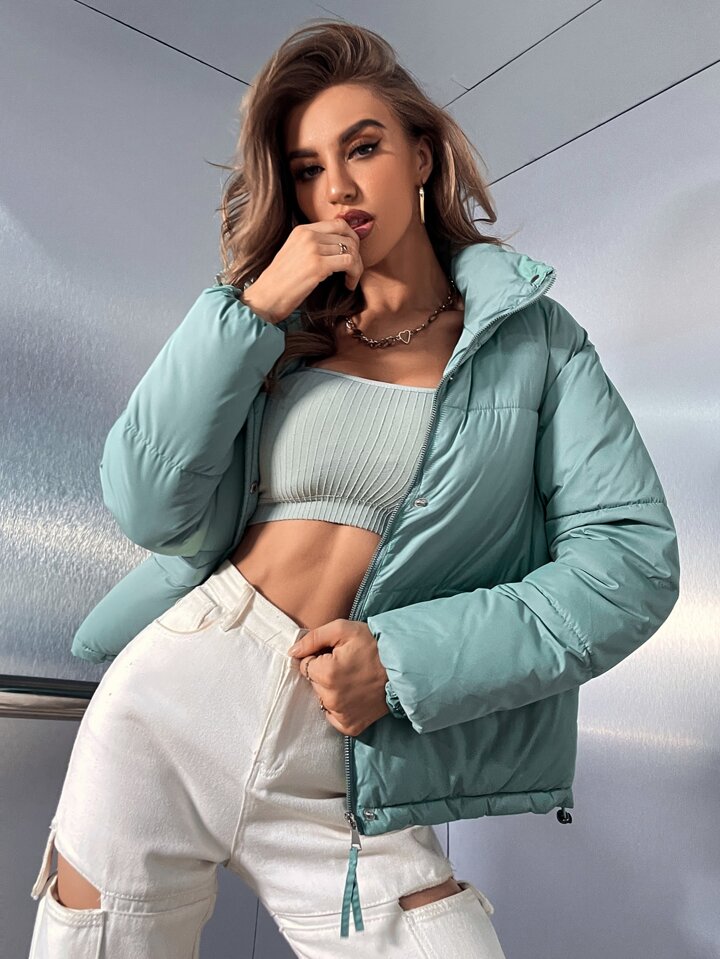 Manteau rembourré de couleur unie décontracté pour l'hiver